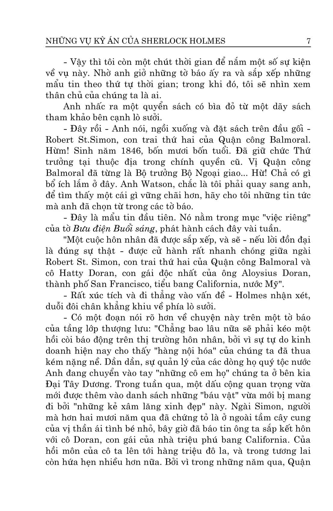 Những Vụ Kỳ Án Của Sherlock Holmes đưa bạn đọc đến những vụ án li kì, hóc búa, biến hoá vô cùng, và cũng lắm dữ dội, hiểm nguy, mà ở đó ông thể hiện tài ba phá án phi phàm của mình. Cuốn sách cuốn hút các bạn trẻ bởi lối kể chuyện nhẹ nhàng, nhưng bí hiểm và vô cùng thông minh. Và hơn thế nữa, còn nhiều thí dụ trắc nghiệm, vừa giúp hiểu rõ hơn, khám phá lý thú hơn các vụ án lừng lẫy của Sherlock Holmes, vừa tăng cường trí thông minh cho các bạn trẻ.