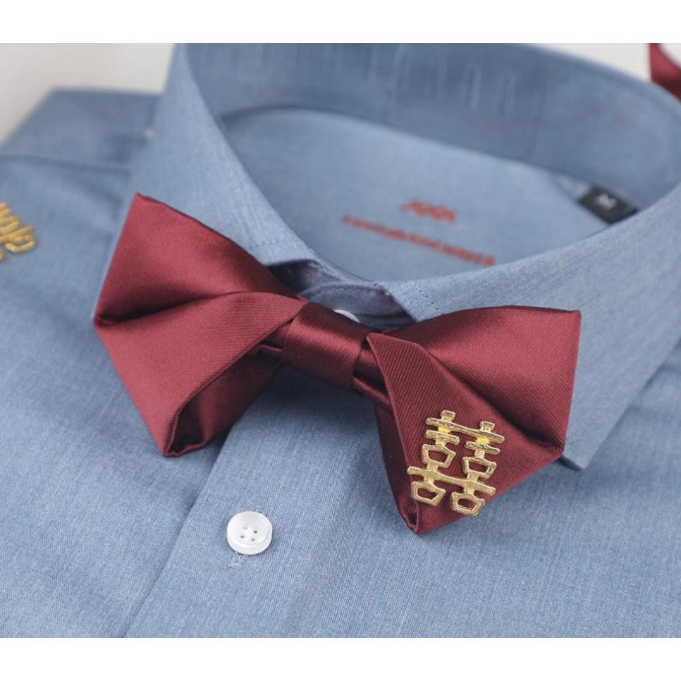 Nơ chú rể - phụ kiện cưới Giang - nơ nhung nhọn 2 đầu mẫu mới cho các tiệm cưới
