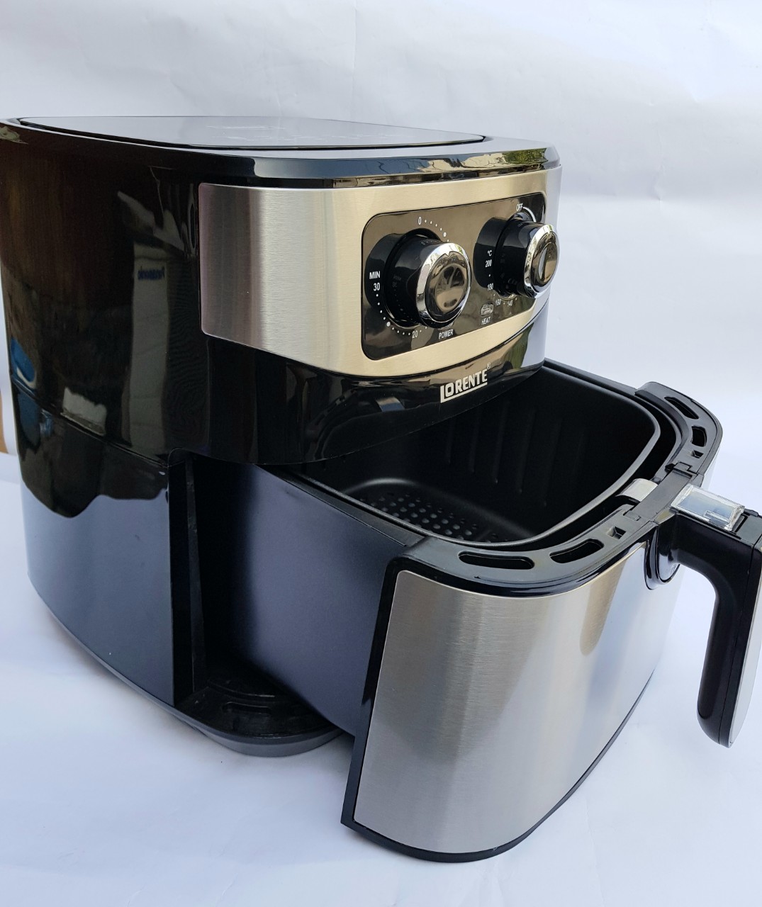 Mua tại TiktokNỒI CHIÊN KHÔNG DẦU LORENTE LT-1619 Công nghệ Rapid Air ( Chiên không khí) tiên tiến Giảm tới 80% lượng dầu mỡ so với cách Chiên truyền thống. Rất tốt cho sức khỏe Thực phẩm chín đều tất cả các mặt, từ ngoài vào trong nhờ công nghệ đối lưu luồng khí nóng Không bị bắn dầu mỡ khi chiên. An toàn hơn, sạch sẽ bếp hơn. Thiết kế Hiện đại. Kiểu dáng và Chất liệu sang trọng Nồi được chế tạo bằng các chất liệu thân thiện với môi trường, không gây mùi, không có chất dộc hại Mặt ngoài nồi được ốp Inox cao cấp, Sáng bóng. Vừa chắc chắn, Sang trọng lại rất dễ vệ sinh lau chùi Cả 2 lòng giỏ chiên đều được làm bằng thép không gỉ, và được tráng chống dính cao cấp. Thức ăn không bị dính két và cháy khét. Qui trình vệ sinh sau sử dụng rất nhanh và sạch Nồi thiết kế hai núm điều chỉnh Nhiệt độ và Hẹn giờ bằng Cơ. Cực kì chính xác và Bền bỉ. Có âm báo khi kết thúc quá trình nấu.