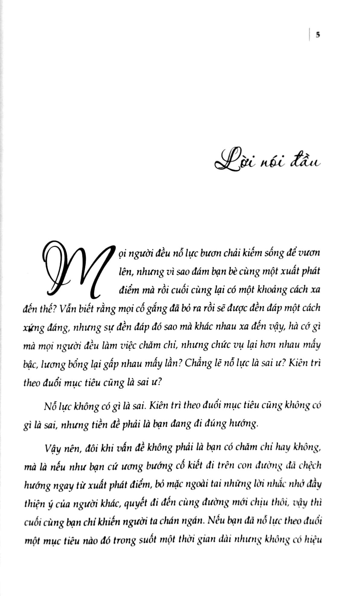 Nỗ Lực Bao Nhiêu Tự Do Bấy Nhiêu Nếu bạn đã nỗ lực theo đuổi một mục tiêu nào đó trong suốt thời gian dài nhưng không có hiệu quả thì có lẽ bạn nên xem lại bản thân m.ình, liệu m.ình có đi sai hướng hay không, từ đó kịp thời điều chỉnh, biết đâu đấy bạn sẽ thành công trong bước tiếp theo. Có rất nhiều thất bại trong cuộc sống không phải vì bạn chưa đủ cố gắng, mà có thể vì bạn chưa tìm được con đường phù hợp nhất cho m.ình. Một khi phát hiện ra m.ình đã “bắt nhầm xe”, bạn phải xuống xe kịp thời, chọn lại cho đúng đường, chỉ có như vậy bạn mới có thể tiến nhanh hơn đến đích thành công. Trước khi nỗ lực, hãy bình tĩnh và suy nghĩ thật chín chắn xem m.ình thích gì, giỏi gì và nên chọn con đường sống như thế nào. Chỉ khi con đường mà bạn nỗ lực đi là đúng đắn, sự kiên trì của bạn mới thực sự có giá trị, mỗi giọt mồ hôi của bạn đổ ra mới đáng giá. Ông trời không phụ kẻ có tâm, những nỗ lực lúc này của bạn nhất định sẽ được đền đáp một cách xứng đáng.