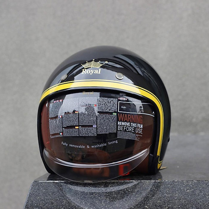Thông tin chi tiết: Thương hiệu: Royal (Mafa VN sản xuất) Model: M139 Luxury Loại: 3/4 đầu, có kính âm giảm UV Kính: Kính âm nhỏ màu trà khói, chống tia UV, bụi, gió. Mái