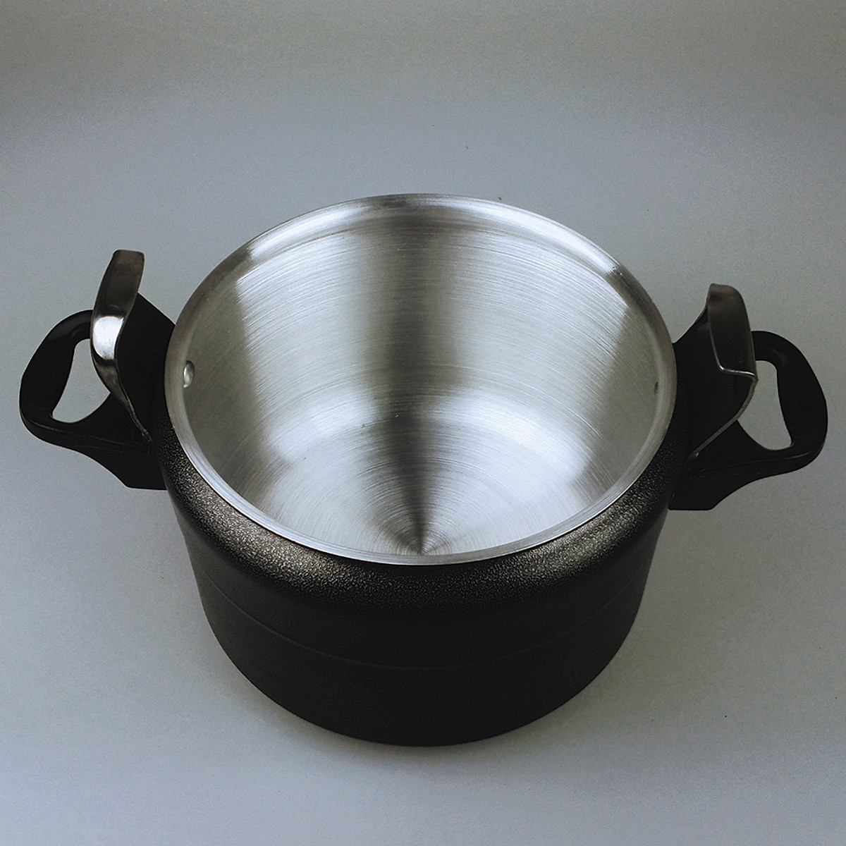 Nồi áp suất cao cấp Hannover. Nồi được thiết kế 2 tay cầm ngắn và 1 tay cầm dài chắc chắn và an toàn khi sử dụng Nồi cấu trúc đáy 3 lớp theo phương