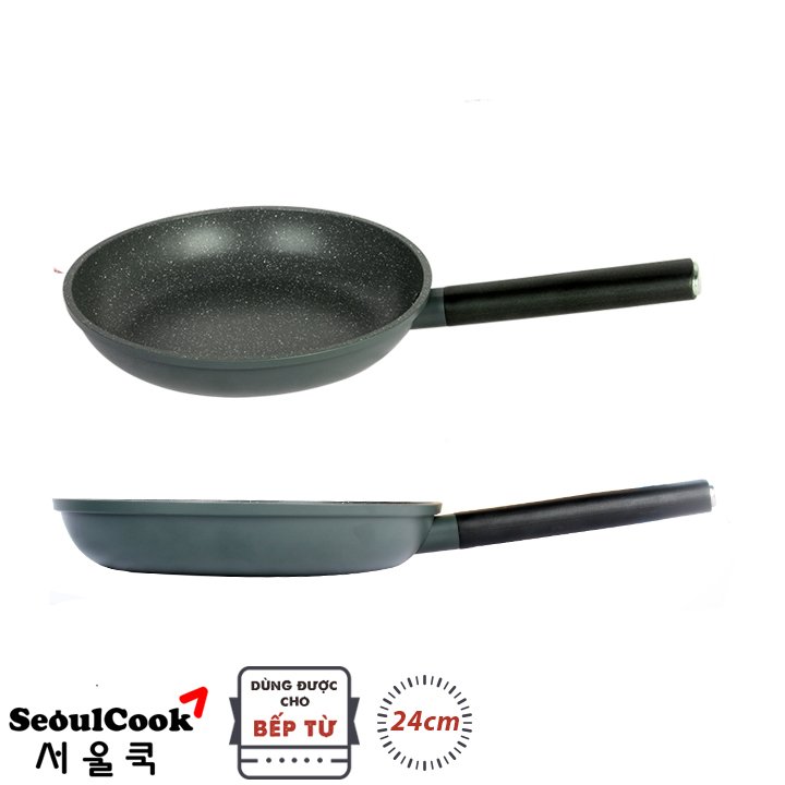Bộ sản phẩm bao gồm: - 1 Quánh 1 tay cầm đáy từ 16cm Seoulcook Luxury màu xanh oliu + nắp kính 16cm - 1 Chảo vuông đáy từ Seoulcook 15x20 cm màu đen vân