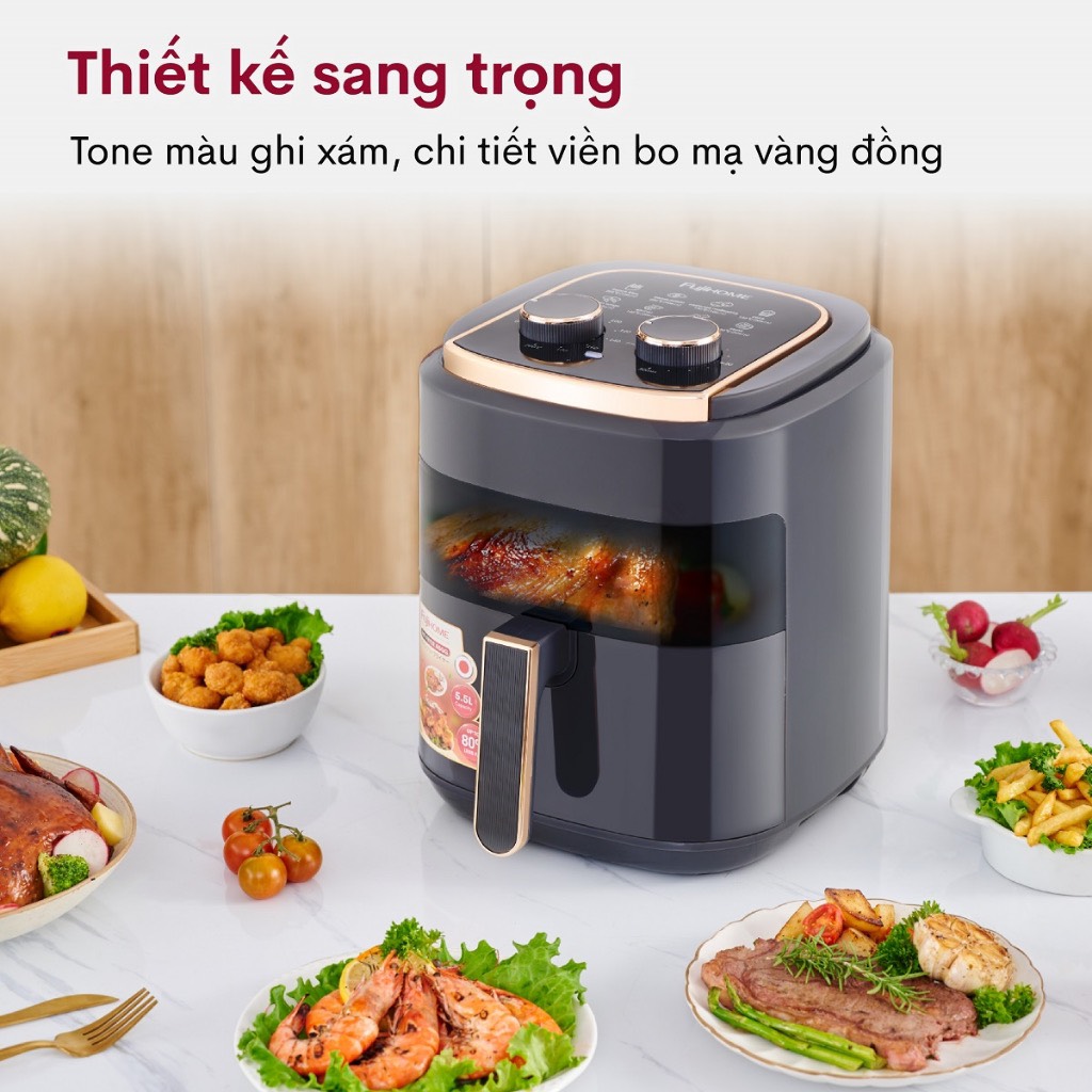 ✨Nồi chiên không dầu 5.5 Lít FujiHome A5GG nhập khẩu tặng kèm kẹp gắp inox cao cấp - hàng chính hãng