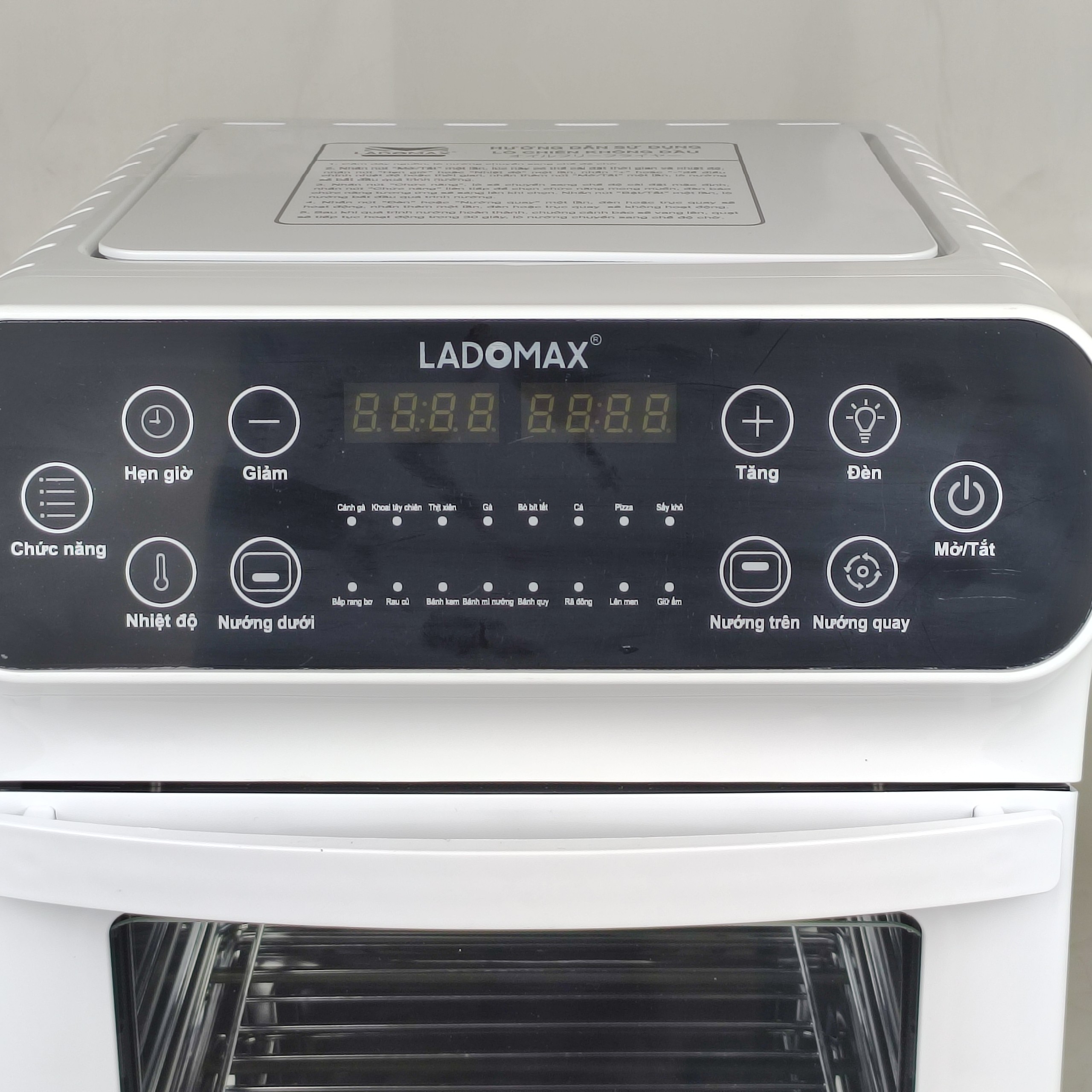 - Lò có 16 món chiên tích hợp sẵn như chiên gà, thịt, bắp, khoai tây, làm bò bít tết…Lò chiên không dầu còn có thể làm bánh kem, rã đông thức ăn như lò vi sóng và lên men thức ăn. Lò chiên không dầu Ladomax gần như có thể thay thế nồi chiên, lò nướng, lò vi sóng,…