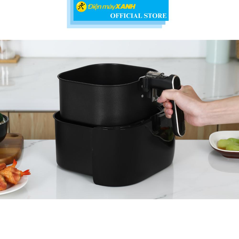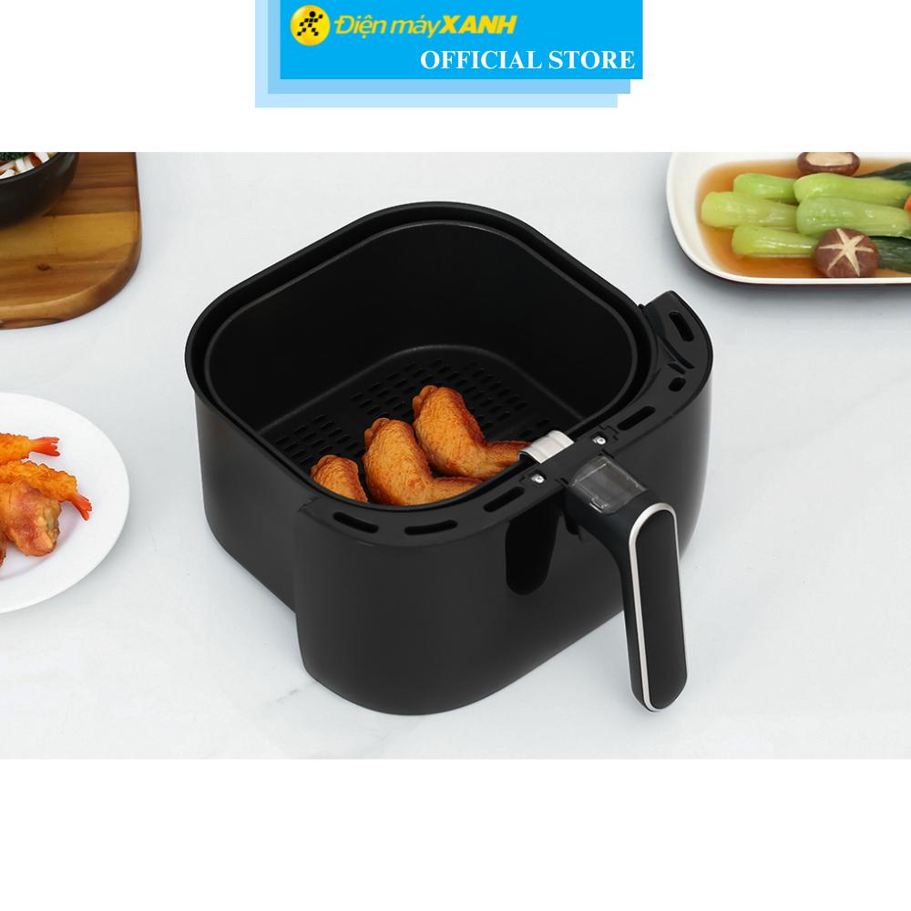 - Nồi chiên không dầu có dung tích tổng lớn 5.6 lít, dung tích sử dụng 3 lít, chiên được khoảng 5 bánh trứng hoặc 3 đùi gà.