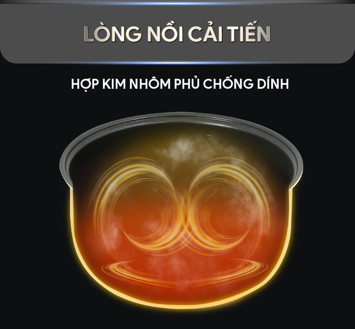 Lòng nồi tráng nhiều lớp hợp kim ép dọc rất dày dặn và bền Mâm nấu từ với công suất là 1455W Màn hình điện tử thông minh có nhiều chế độ: nấu cơm, cháo,