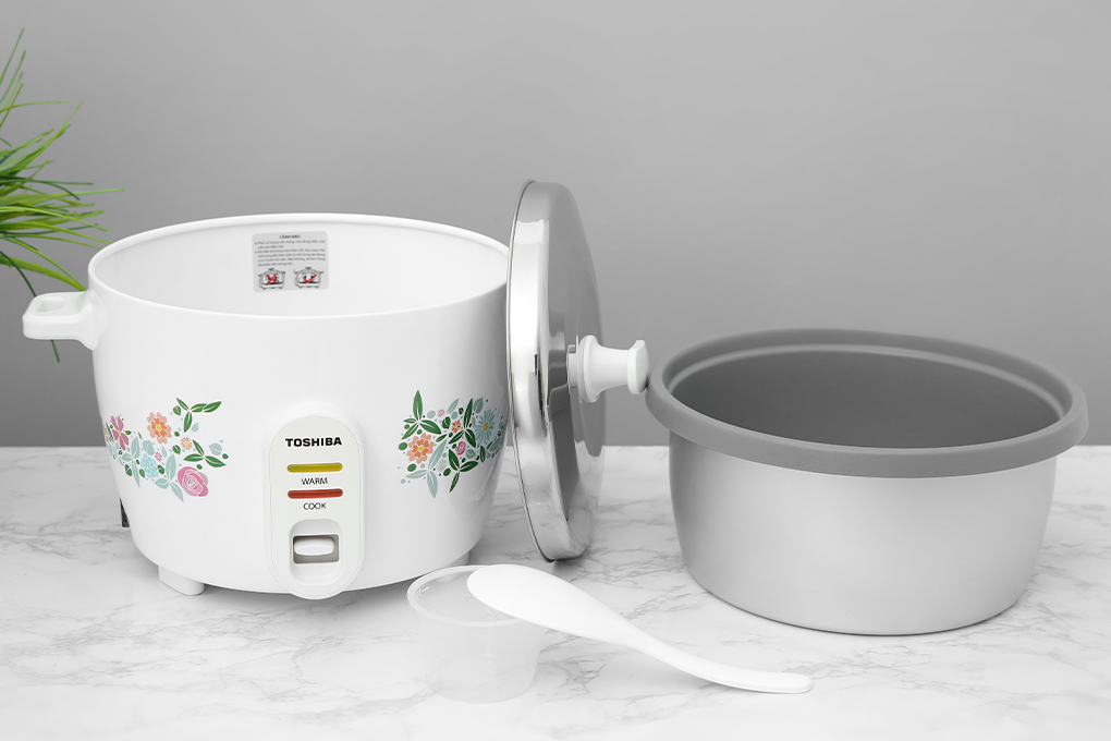 Nồi cơm điện Toshiba kiểu dáng mềm mại, họa tiết trang nhã, thiết kế nắp rời với dung tích 1.8 lít dùng cho gia đình 4 - 6 thành viên