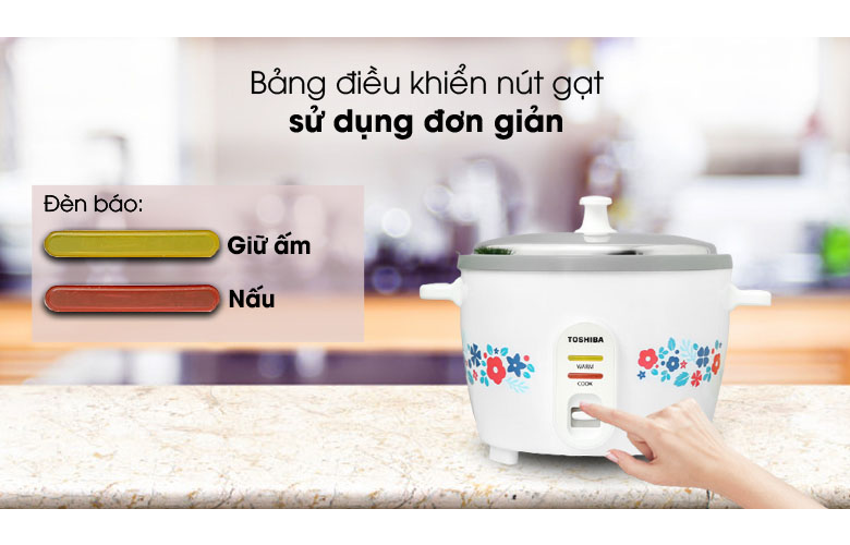 Nồi cơm điện Toshiba kiểu dáng mềm mại, họa tiết trang nhã, thiết kế nắp rời với dung tích 1.8 lít dùng cho gia đình 4 - 6 thành viên Vỏ nồi bằng thép phủ sơn tĩnh