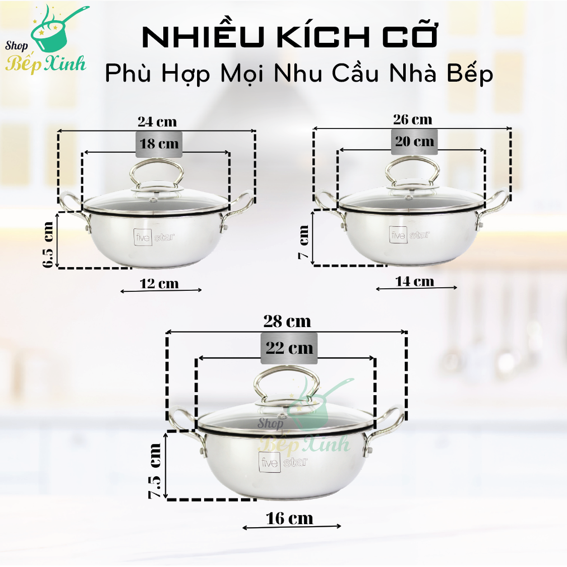 Nồi Inox 304 chống dính 3 đáy Fivestar 20cm dùng bếp từ, chính hãng bảo hành 60 tháng #sanhangre