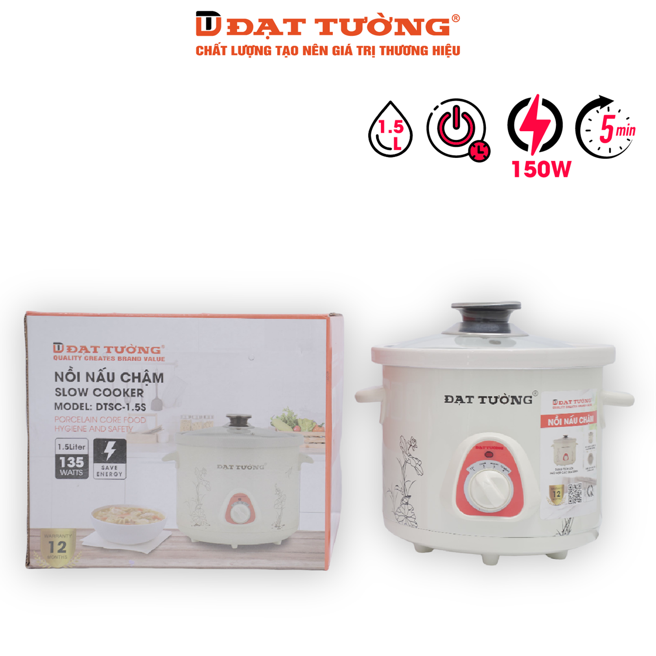 Nồi nấu cháo chậm cho bé, nồi kho cá Đạt Tường 1.5L công suất 135W - Zalo 0935 687 499