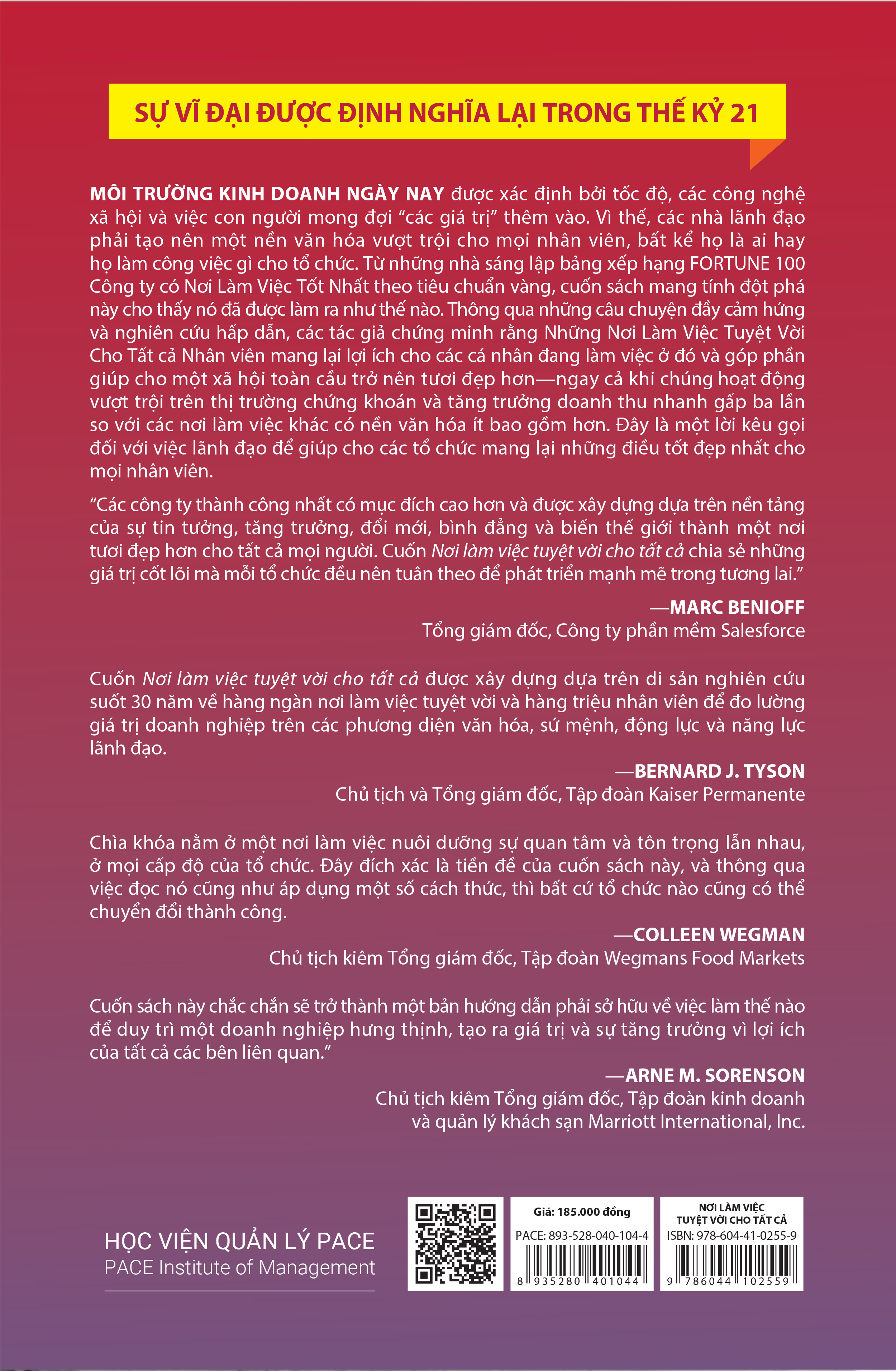 NƠI LÀM VIỆC TUYỆT VỜI CHO TẤT CẢ (A Great Place to Work for All) - MICHAEL C. BUSH - Nguyễn Việt Anh dịch - (bìa mềm) - Giá bìa: 185.000đ