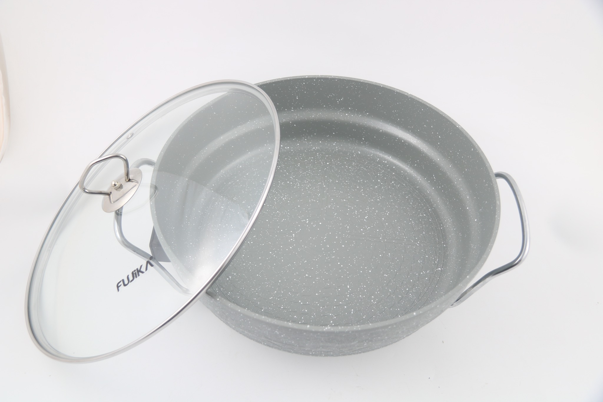Chảo lẩu Fujika sử dụng lòng bằng hợp kim nhôm phủ men chống dính chịu nhiệt, các lớp mỡ từ thịt sẽ không bám lên thành chảo được, dễ dàng vệ sinh hơn