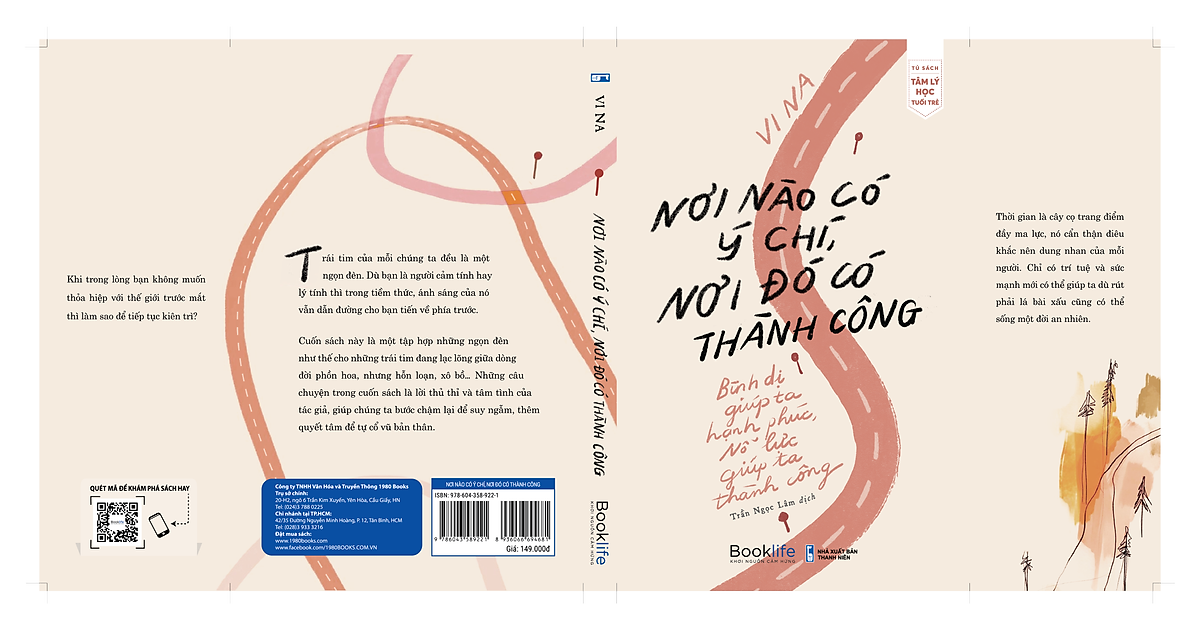 TÁC GIẢ: Vi Na Dịch giả: Trần Ngọc Lâm THÔNG TIN XUẤT BẢN: Kích thước: 13.5x20.5 Số trang: 392 Mã EAN: 8 936066 694681 NXB liên kết: NXB THANH NIÊN Sách do Công ty TNHH Văn hóa và Truyền thông 1980 BOOKS ấn hành quý IV/2022. NƠI NÀO CÓ Ý CHÍ, NƠI ĐÓ CÓ THÀNH CÔNG Hành trình cuộc đời sẽ luôn có những khó khăn, những điều không mong muốn xảy đến nằm ngoài những gì chúng ta đã dự liệu. Mỗi người chúng ta sẽ có cách đối mặt với chúng để vươn tới một tương lai tốt đẹp. Nhưng chỉ có người kiên định với mục tiêu mới có được thành công ở cuối con đường. Vì vậy, đừng chọn sự dễ dàng khi bạn còn trẻ, đừng từ bỏ ước mơ của bạn vì một khó khăn nhất thời. Cuốn sách này sẽ mang đến cho bạn nguồn năng lượng mới để bạn có niềm tin vào cuộc sống, vào những ước mơ mà bạn đang ấp ủ. Mỗi nhân vật xuất hiên trong cuốn sách lại mang một câu chuyện khác nhau, từ chuyện đi học, làm việc, yêu đương, cho đến một loạt các lựa chọn… Mỗi lựa chọn đều phải đối mặt với rất nhiều thử thách, mỗi thử thách đều phải cố gắng vượt qua, may mắn là, chính họ là người có quyền quyết định đối với kết quả của cuộc chơi này bằng sự nỗ lực của bản thân. Đây là một cuốn sách với những câu chuyện chân thực, dễ đọc và đáng nhớ, những từ ngữ cảm tính để mô tả sự chân thực và tàn khốc thuộc về lý tính, cách mô tả này rất nhẹ nhàng mà cũng đầy mạnh mẽ, là cuốn sách mà bất cứ ai trong chúng ta cũng nên có trên giá sách của mình. Cuốn sách sẽ là ngọn đèn soi sáng cho bạn đi qua những đêm tối, hãy tin vào bản thân nỗ lực hết mình hướng đến tương lai. Bởi vì cuộc đời không phụ lòng người biết nỗ lực.