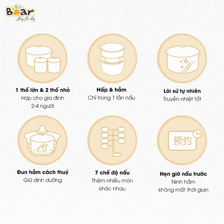 Nồi nấu chậm 1.5L Bear sở hữu nhiều tính năng và công dụng vượt trội, đã nhanh chóng nhận được sự săn đón nhiệt tình từ cộng đồng người tiêu dùng Việt. Bên cạnh đó, thiết kế