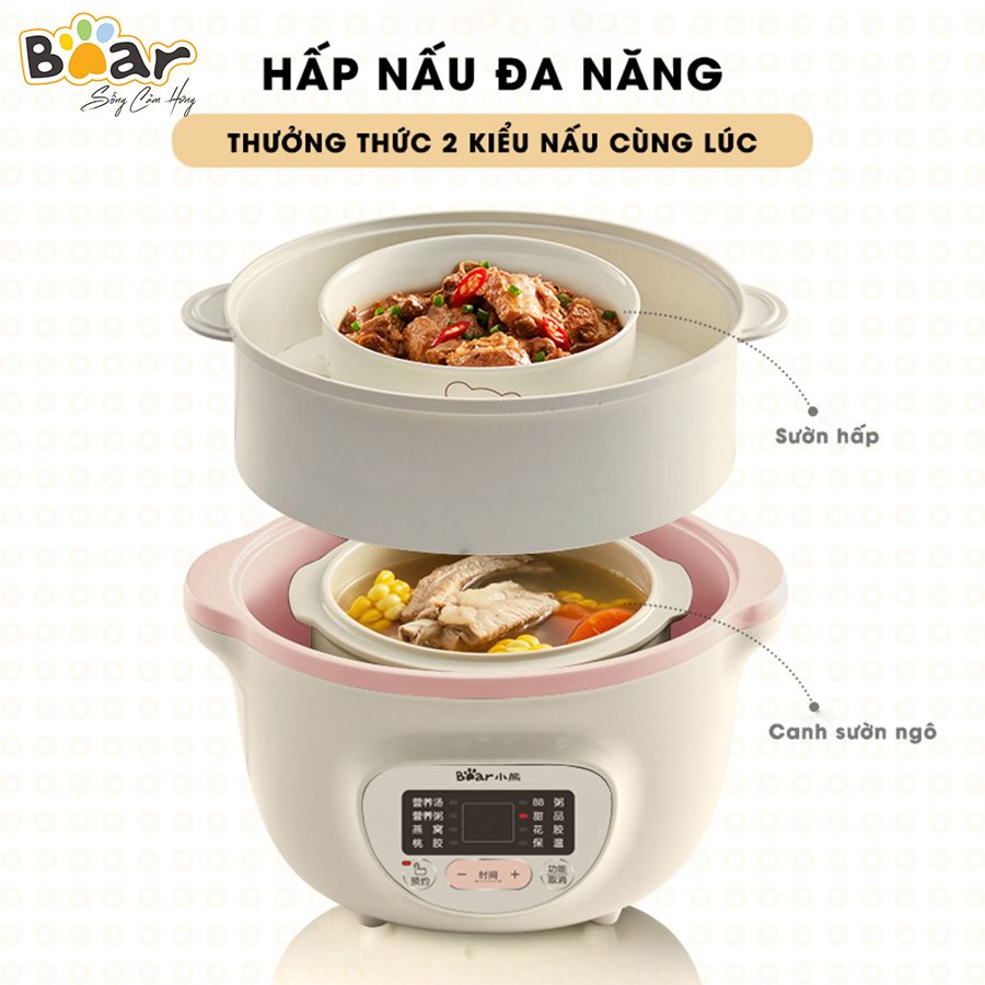 Nồi nấu chậm kèm lồng hấp Bear DDZ-D16J3 (SUBE002) được tích hợp nhiều tính năng nấu và hầm tiện lợi, giúp bạn làm nhiều món ăn khác nhau như: hấp, hầm, chưng yến, nấu cháo,