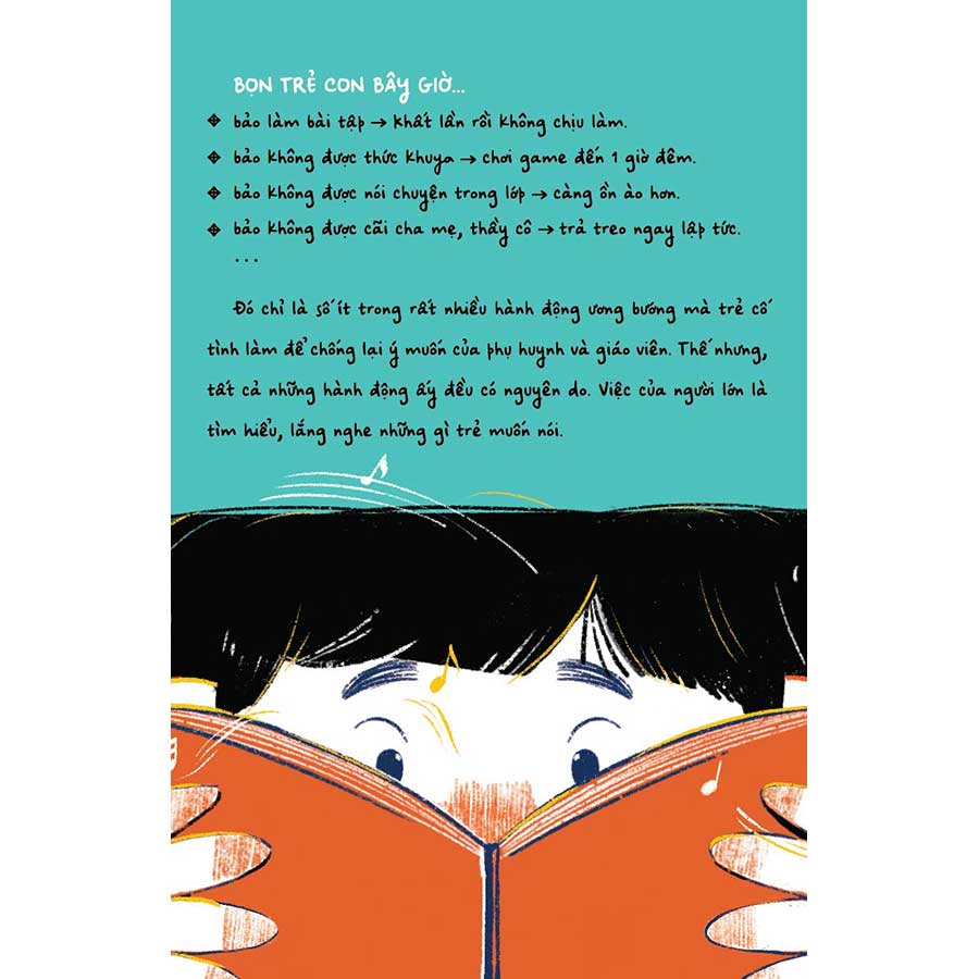 Đó chỉ là số ít trong rất nhiều hành động ương bướng mà trẻ cố tình làm để chống lại ý muốn của phụ huynh và giáo viên. Thế nhưng, tất cả những hành động ấy đều có nguyên do. Việc của người lớn là tìm hiểu, lắng nghe những gì trẻ muốn nói. Đọc Nói sao cho trẻ chịu học ở nhà và ở trường, các bậc phụ huynh và giáo viên sẽ biết kết hợp uy quyền với việc làm gương cho trẻ; biết tạo ra môi trường cảm xúc khiến trẻ cảm thấy an toàn để mở lòng ra trước những cái mới lạ; biết khích lệ trẻ dám chịu trách nhiệm và rèn tính tự giác học tập cùng kỷ luật… Tất cả đều nhằm động viên, khơi nguồn sáng tạo và trao quyền cho những đứa trẻ yêu quý nhất đời bạn.