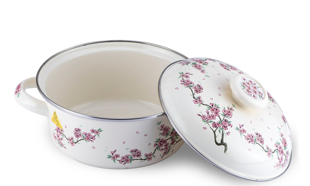 ✨Nồi tráng men FUJIHORO 18cm, 1.8L ( Hoa văn Sakura tím) SKW-12, Sử dụng bếp từ