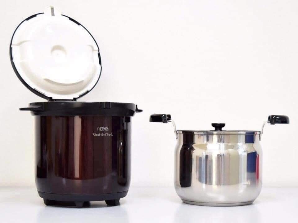 Bước 4: Nhấc nồi ra khỏi bếp và đặt nồi nấu và trong nồi ủ nhiệt chân không.