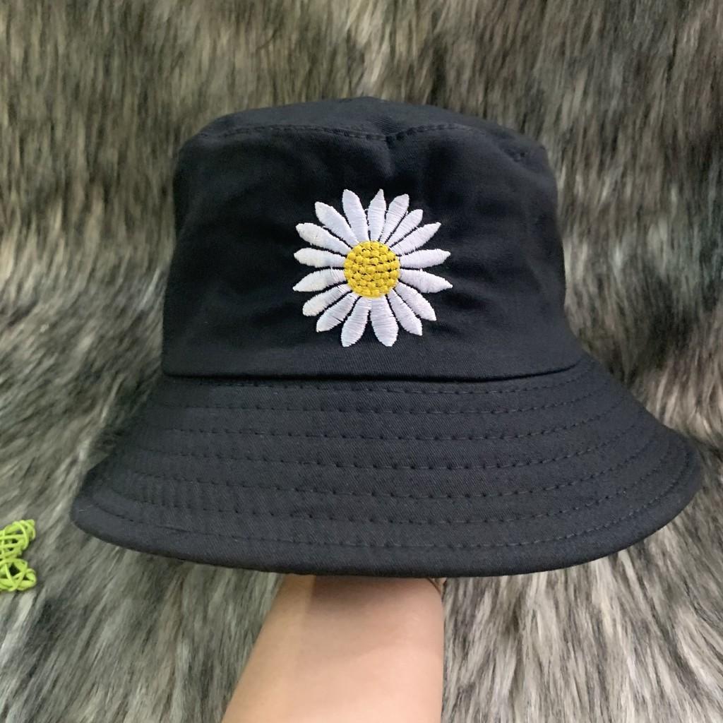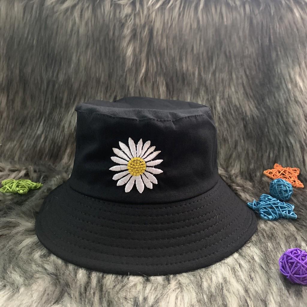 ✨Nón Bucket, Mũ Vành Tròn Thêu Hoa Cúc ĐEN
