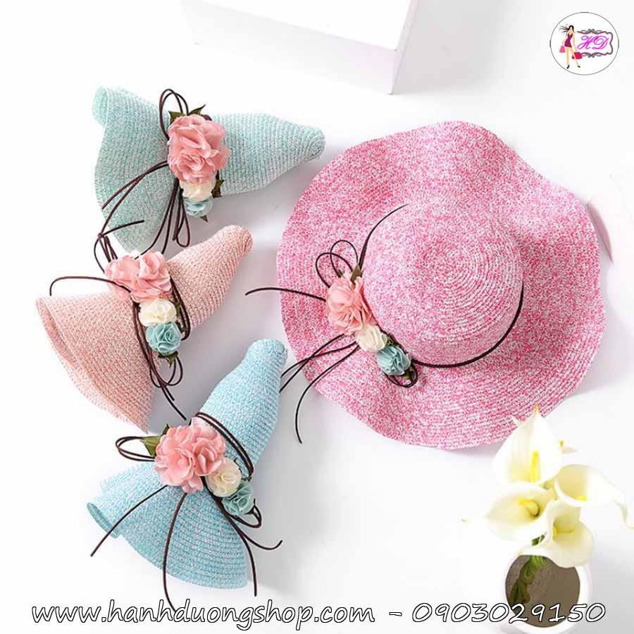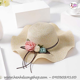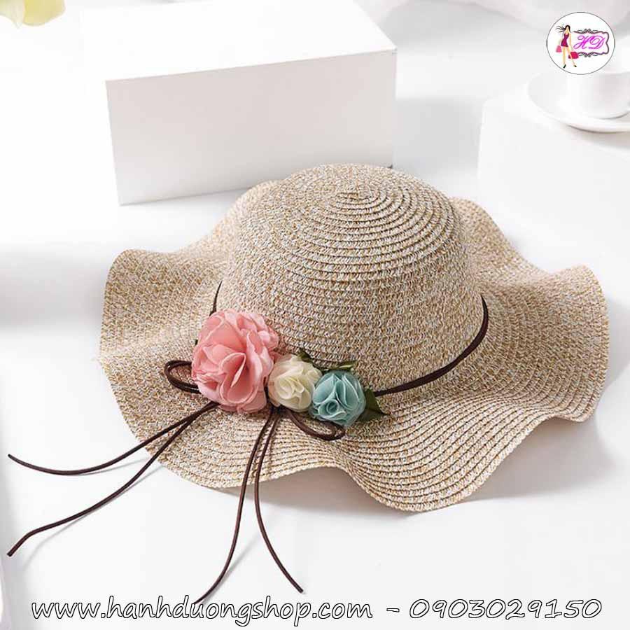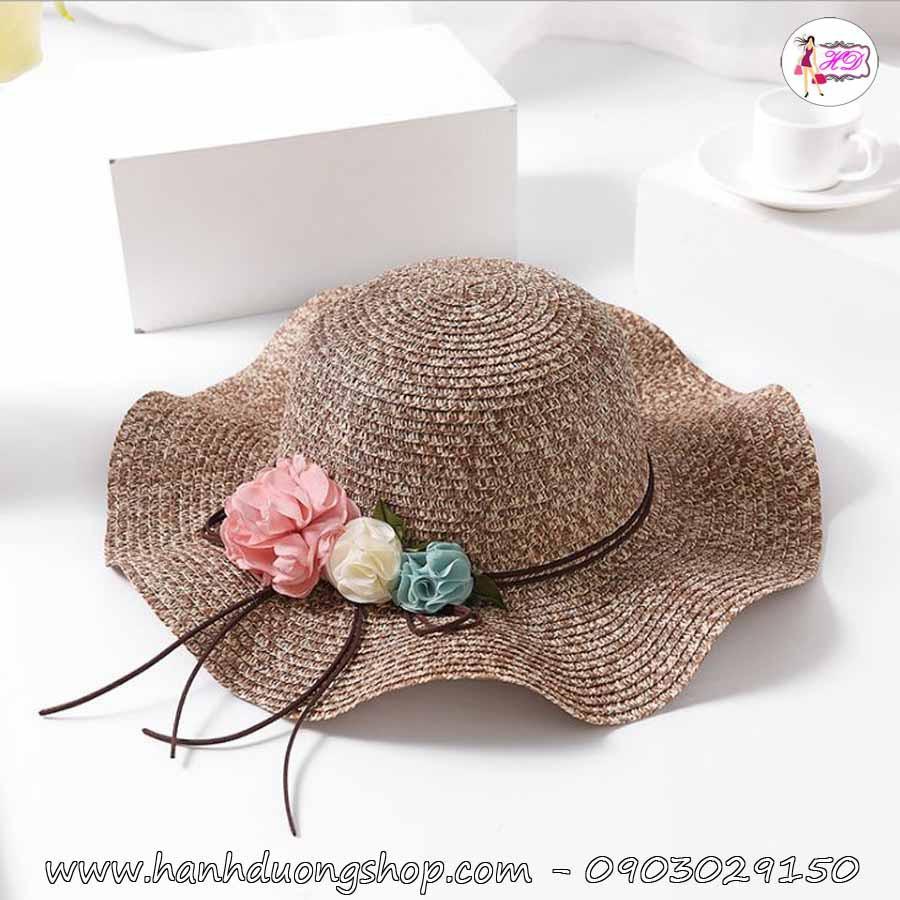 ✨Nón cói bãi biển vành gợn sóng nơ 3 hoa HQC4114