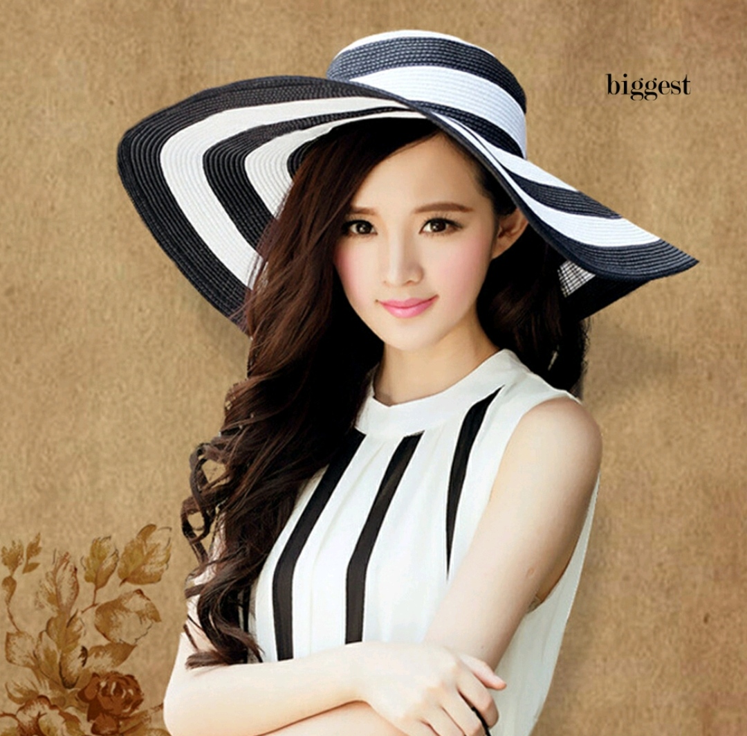 Nón Cói Rộng Vành Hoạ Tiết Kẻ Sọc Cho Phái Nữ Mũ rộng vành đi biển đẹp Nón rộng vành đi biển Mũ cói đi biển rộng vành Panama thời trang Hàn Quốc Loại sản phẩm: Mũ cói Nón rộng vành Panama Kiểu cách sang chảnh, nhẹ nhàng, thoáng mát