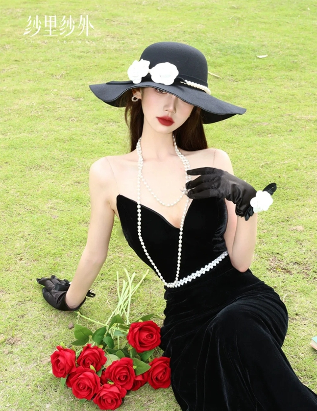 Nón cao bồi vành bằng mũ rộng vành nỉ dạ phối 2 hoa đen trắng đai ngọc trai nhân tạo thời trang Hàn Quốc Nón đi biển mũ vành nhỏ thoáng mát thời trang du