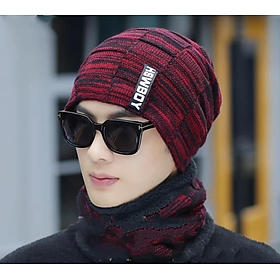 PVN55244 Mũ len cho nam kèm khăn choàng cổ mùa đông giữ ấm tốt