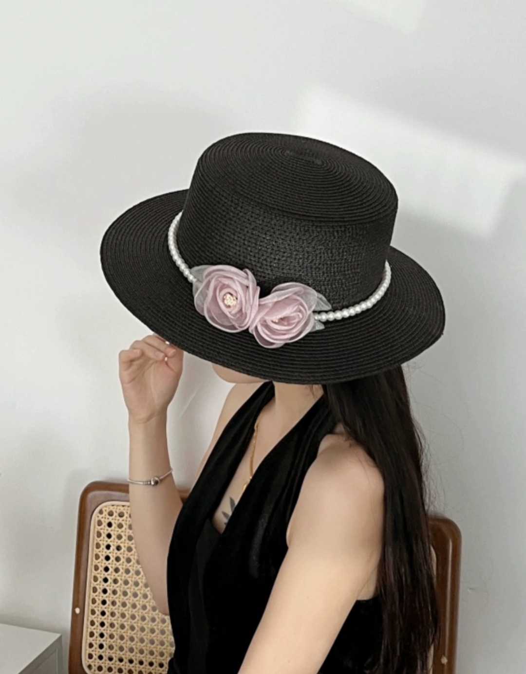 Mũ cói rơm vành phẳng nữ mùa hè phiên bản Hàn Quốc chống nắng UV cho kỳ nghỉ Nón đi biển Paris thời trang hàng đầu Pháp Chất liệu cói