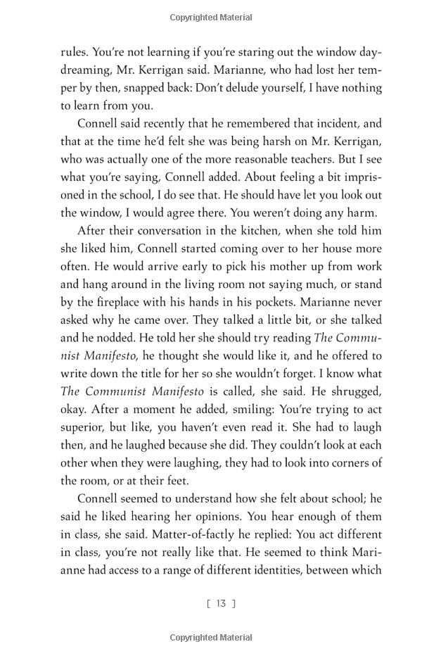 A year later, they’re both studying at Trinity College in Dublin. Marianne has found her feet in a new social world while Connell hangs at the s, shy and uncertain. Throughout their years at university, Marianne and Connell circle one another, straying toward other people and possibilities but always magnetically, irresistibly drawn back together. And as she veers into self-destruction and he begins to search for meaning elsewhere, each must confront how far they are willing to go to save the other.