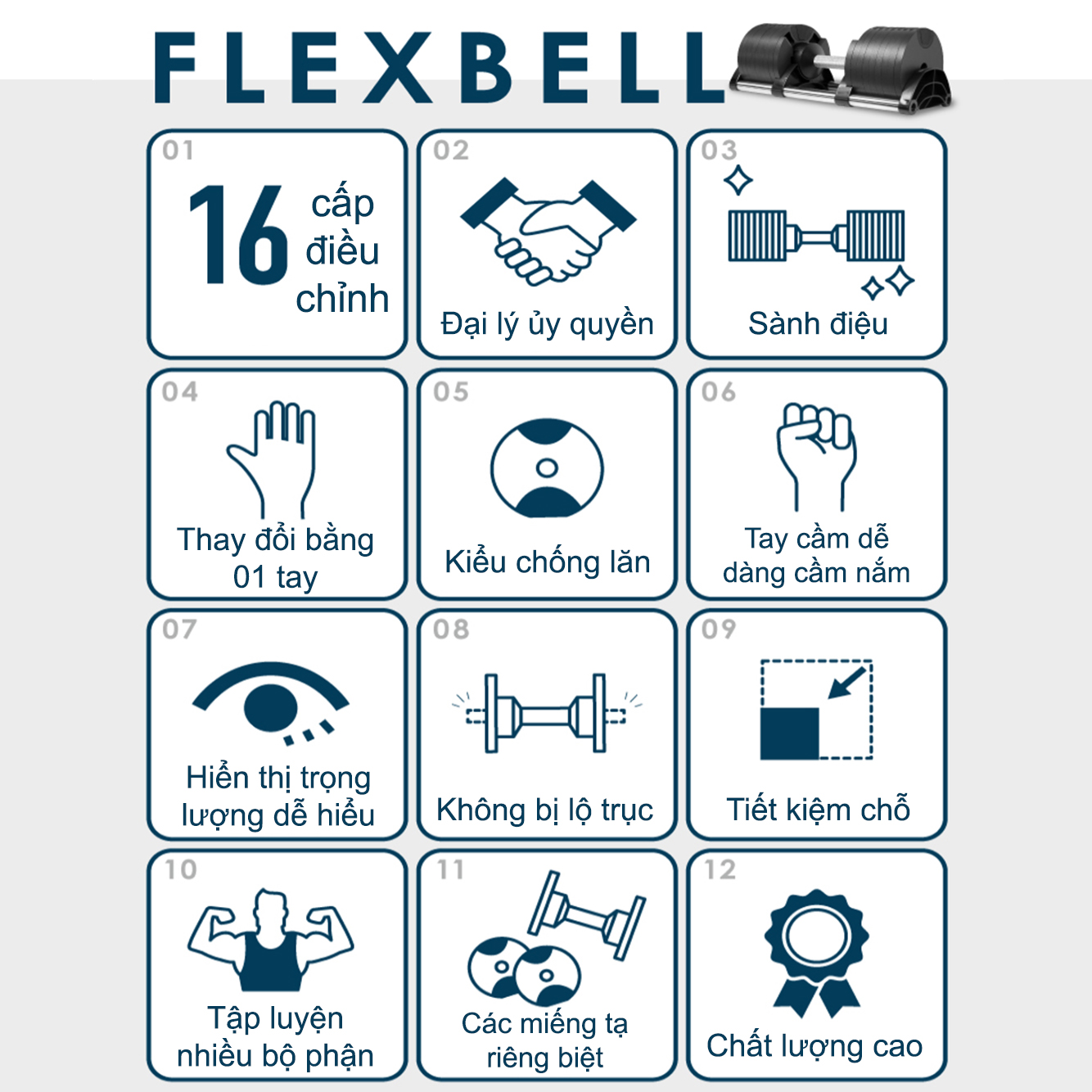 ✨Nuobell flexbell - 01 quả tạ tay 32kg/ 02 quả tạ 64kg (16 cấp điều chỉnh trọng lượng) tập gym tập thể dục tập tạ tập luyện cơ bắp.