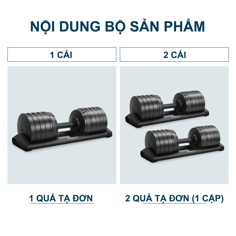 Bộ Tạ 4 in1 là sản phẩm tạ tập luyện, có thể chuyển đổi giữa 3 chế độ: số lượng bánh tạ và kích thước bánh tạ có trên ảnh sản phẩm. Tạ tay, Tạ
