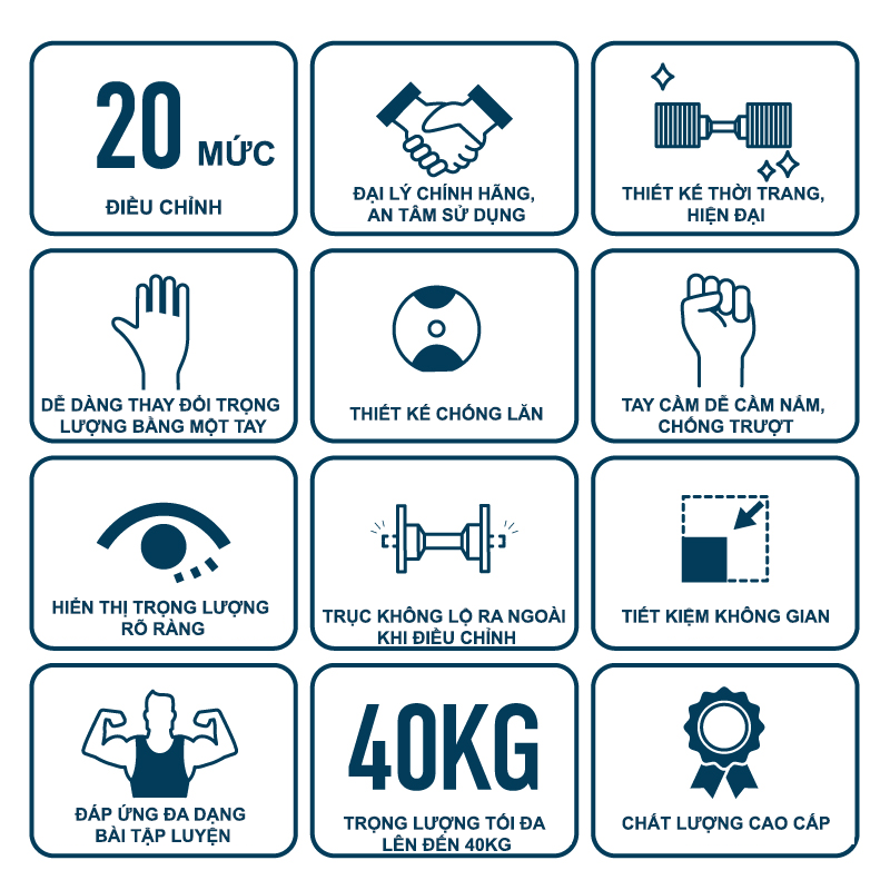 Mô tả chi tiết sản phẩm: Bộ Tạ Tập Gym Tại Nhà 40kg - Bộ Tạ Tay Đa Năng Điều Chỉnh Cân Nặng - Kết Hợp Tạ Tay, Tạ Đẩy, Tạ Đòn - Phân loại