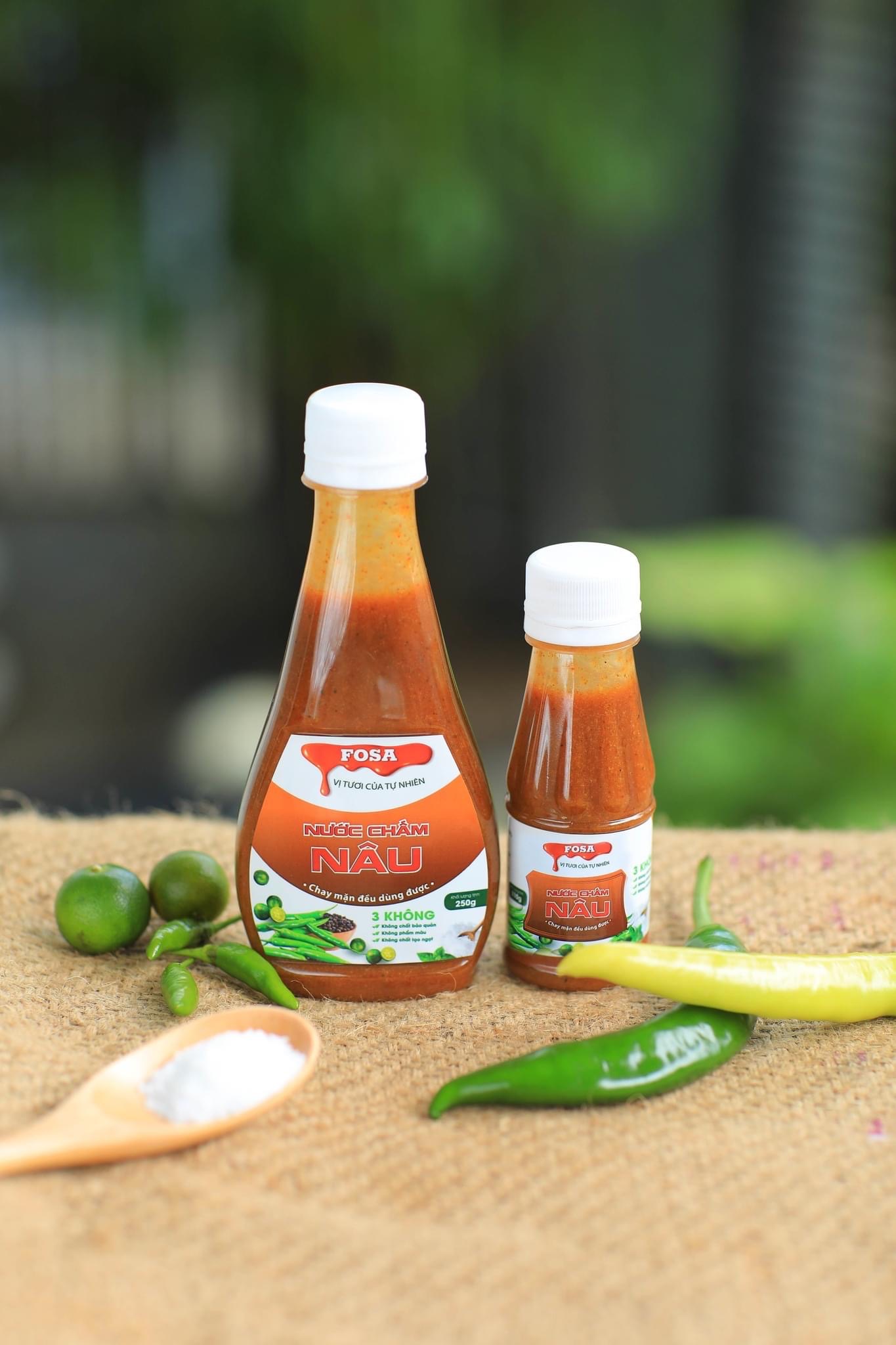 Nước chấm Đỏ Fosa là sự pha trộn của các loại ớt cay nồng và thơm ngon, mang lại sự tinh tế và phong phú cho mọi món ăn của bạn. Chấm đỏ Fosa phù hợp ăn kèm với các món gà và mọi món ăn hằng ngày. Nước chấm Xanh Fosa: Hương vị cay nồng đặc trưng của những trái ớt xiêm sẽ đem lại cho bạn trải nghiệm ẩm thực tuyệt vời. Chấm Xanh phù hợp khi dùng để chấm hải sản. Nước chấm Nâu Fosa: Mùi thơm của tiêu Tây Nguyên sẽ giúp cho những món luộc và hấp trở nên thật ngon miệng. Chấm Nâu phù hợp khi dùng với món luộc và hấp. Nước chấm Đen Fosa: Một chút hương vị Tây Bắc nồng nàn, Nước chấm Đen sẽ là người bạn đồng hành tuyệt vời cho các buổi tiệc nướng hấp dẫn. Chấm Đen phù hợp khi dùng kèm món nướng