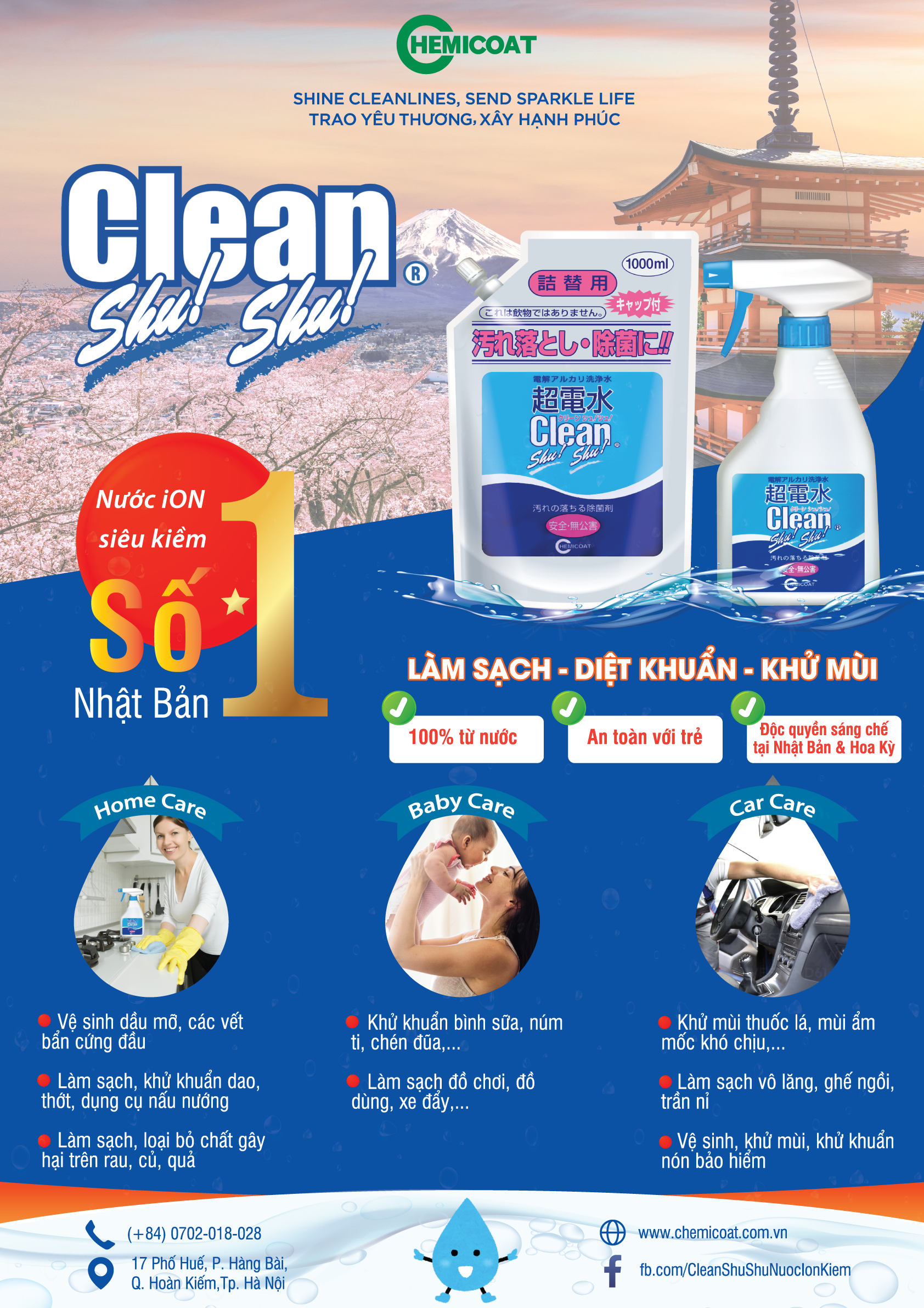 [Giới thiệu] Clean Shu! Shu! 100% nước ion kiềm Làm sạch - Diệt khuẩn - Khử mùi từ Nhật Bản