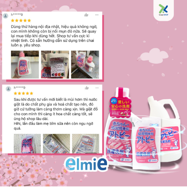 NƯỚC GIẶT QUẦN ÁO ELMIE KHÔNG CHẤT PHỤ GIA BỘT GIẶT DÀNH CHO TRẺ SƠ SINH VÀ TRẺ NHỎ  - Sản phẩm không chứa chất phụ gia bột giặt dành cho trẻ sơ sinh, trẻ