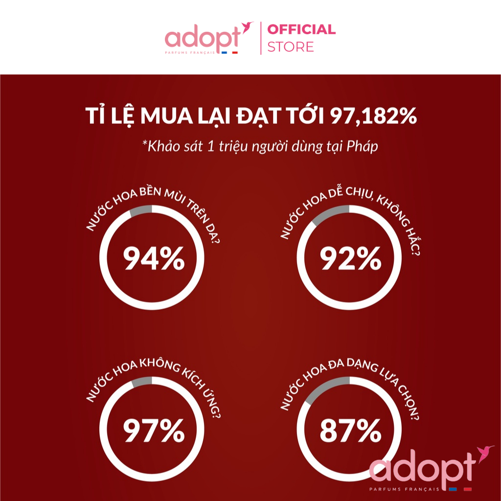 - Sản phẩm nước hoa Adopt được sản xuất từ những nguyên liệu thiên nhiên.