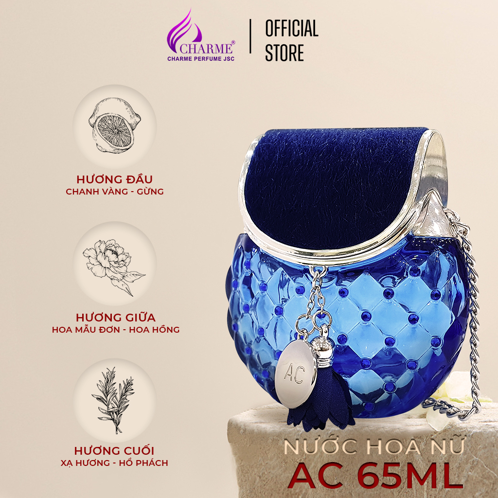 - Nước hoa nữ thơm lâu Charme AC với mùi hương đầy tinh tế và quý phái, từng tầng hương thể hiện từng giai đoạn của chúng ta mỗi khi yêu. Charme AC như thể một bản nhạc tình đầy du dương nhưng cũng không kém phần lãng mạn.