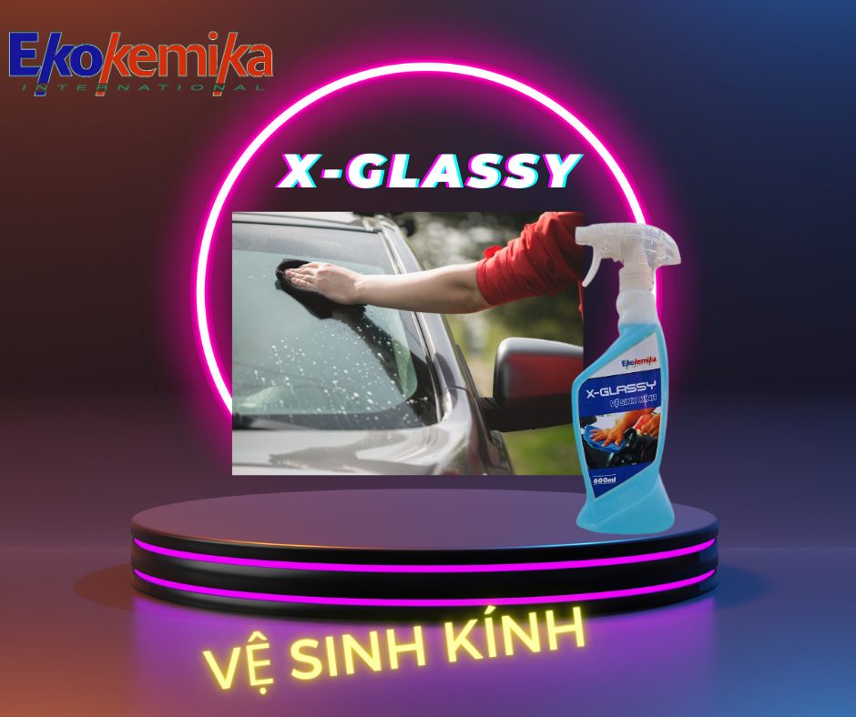 Đặc tính: X-GLASSY là sản phẩm dùng để làm sạch vết bẩn, vết ố và dầu mỡ trên kính xe hơi: mặt kính chắn gió và cửa sổ xe. Với thành phần và công nghệ