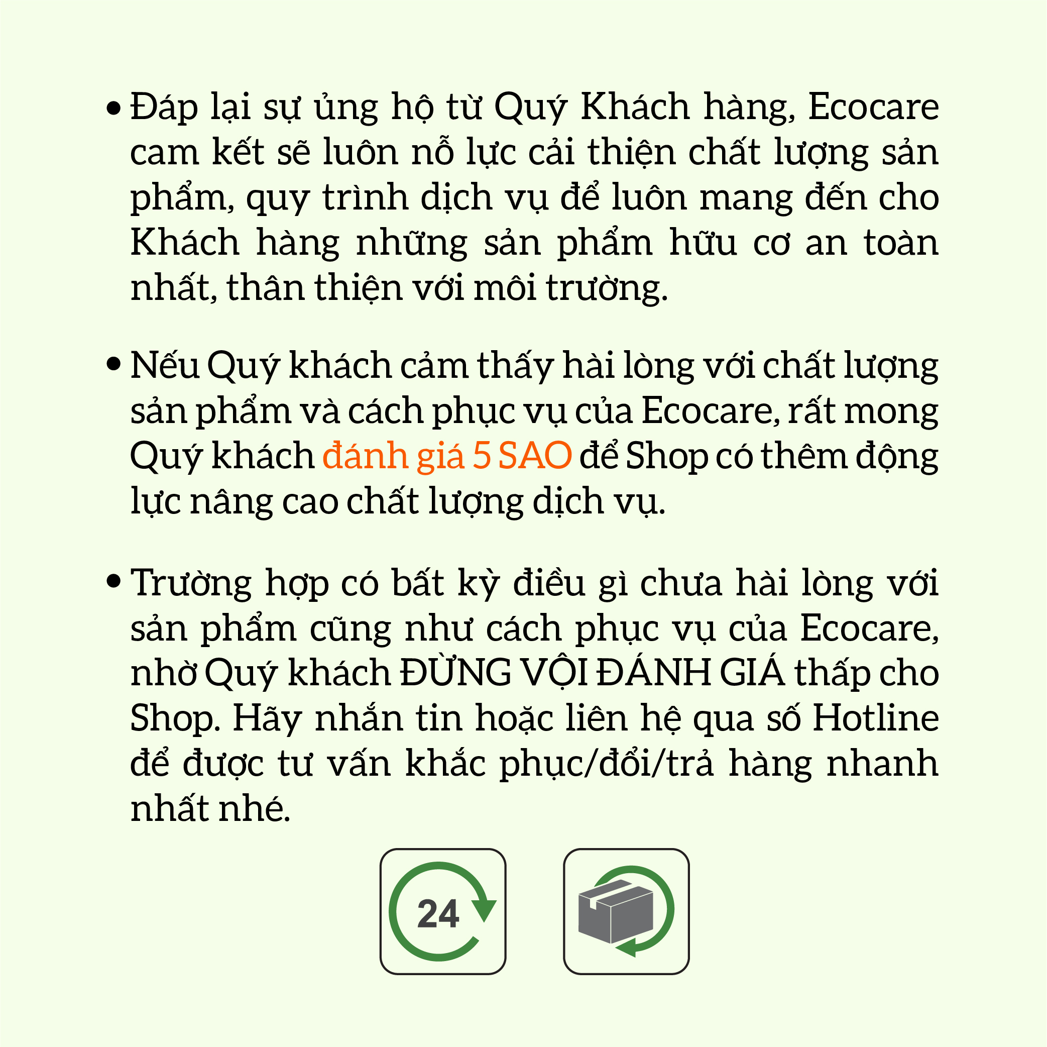 - Sản phẩm Nước lau sàn hữu cơ Bồ hòn Ecocare cam kết: