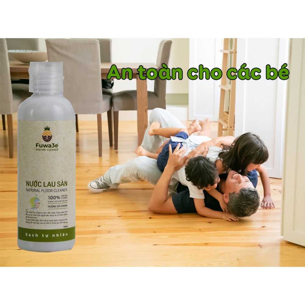 Nước lau sàn chứa hóa chất độc hại có thể bám lại trên sàn nhà, dễ dàng tiếp xúc với da và tỏa hương thơm hóa học khi lau. Nước lau sàn hữu cơ Fuwa3e