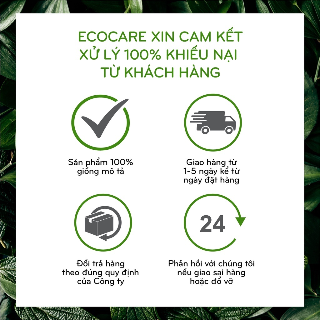 - Sản phẩm Nước lau sàn hữu cơ Bồ hòn Ecocare cam kết: 0% Hương Liệu, 0% Chất tạo màu, 0% Hóa chất độc hại