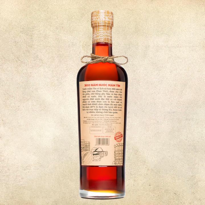 Với công thức 300 năm từ Làng Chài Xưa, nước mắm Tĩn trứ danh ngày nay là nước mắm rin đặc sệt kéo rút trực tiếp từ thùng gỗ ủ chượp, chín chậm từ 12 - 24 tháng với cá cơm than con to béo tươi và muối tinh khiết