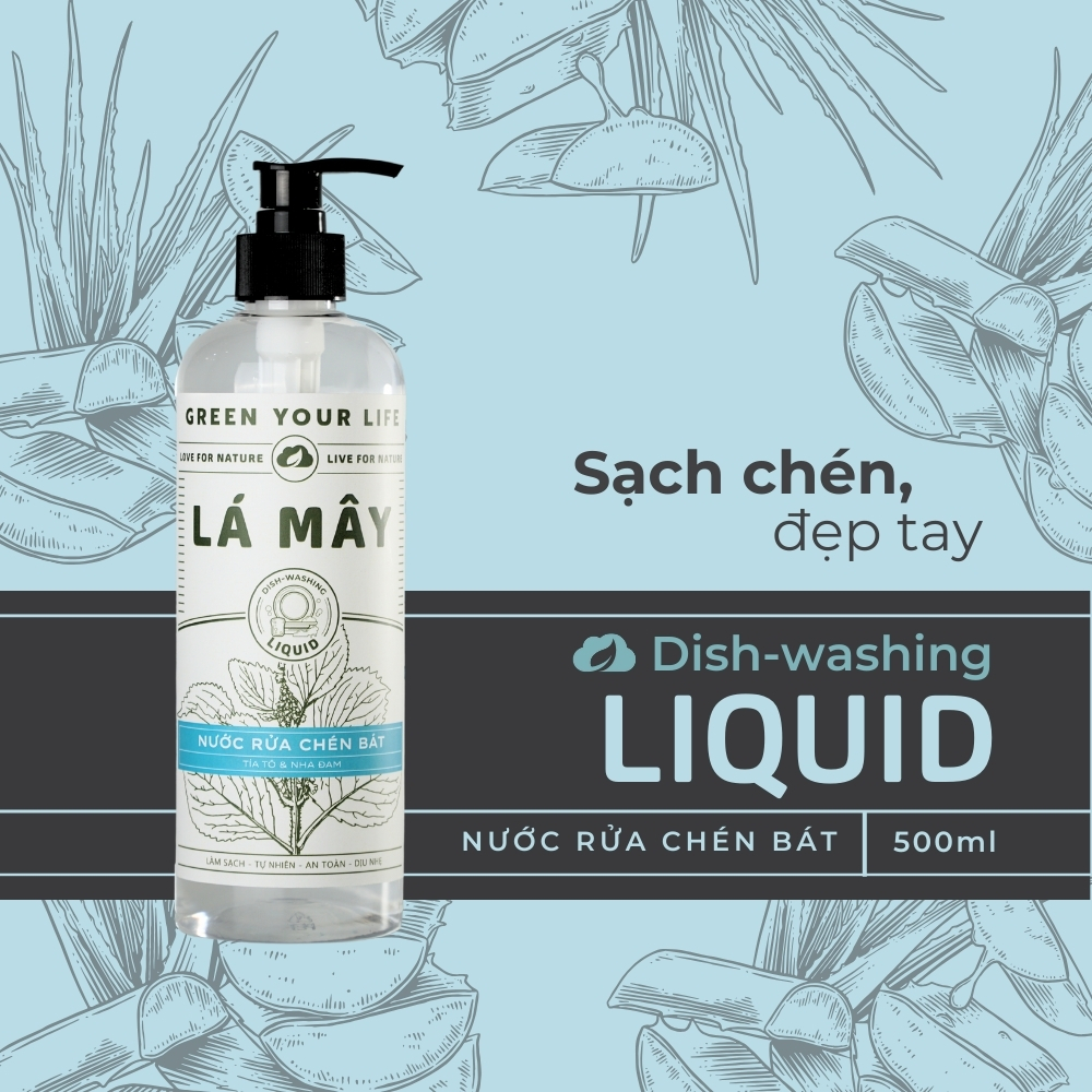 - Nước rửa chén Lá Mây được sản xuất từ các thành phần phân hủy sinh học, giúp bạn vừa làm sạch chén bát, vừa góp phần bảo vệ môi trường xanh.