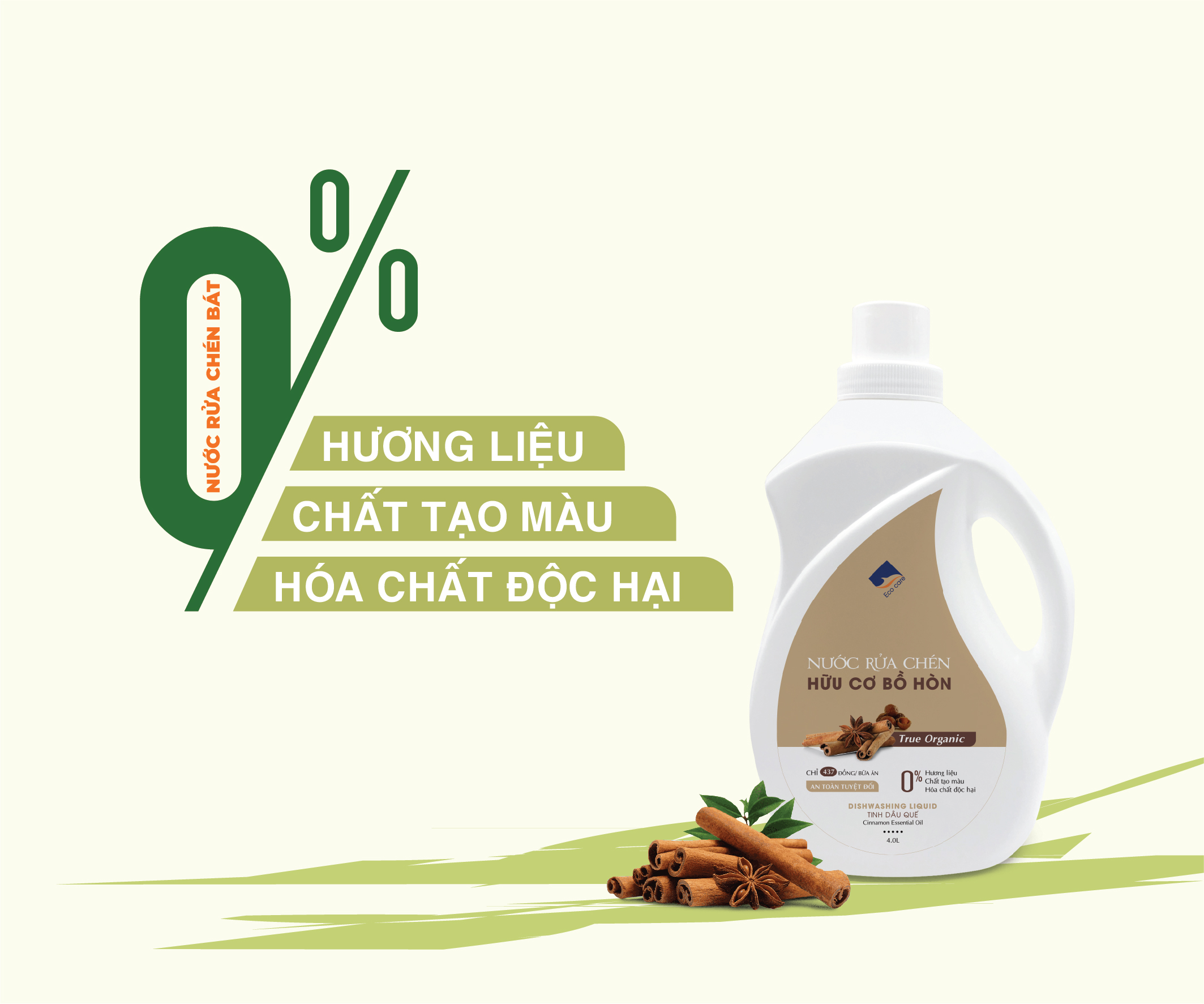 SẢN PHẨM Nước rửa chén hữu cơ Ecocare 4L tinh dầu thiên nhên, nước rửa chén cho bé, an toàn da tay được sản xuất với thành phần tự nhiên, nguồn gốc thực vật ►