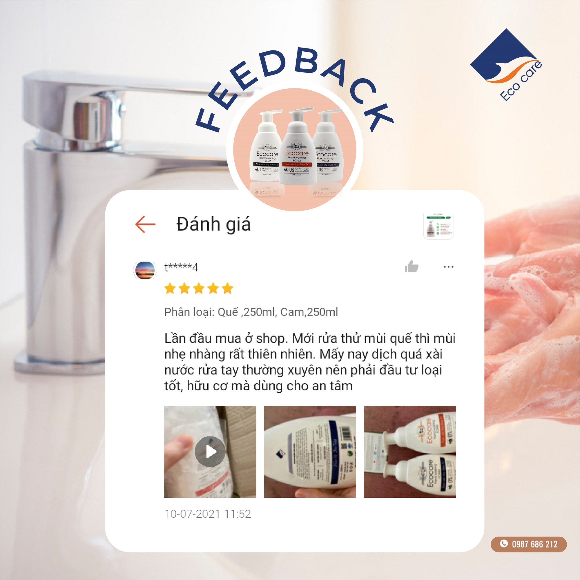 Nước rửa tay tạo bọt Hữu cơ 4000ml, Nước rửa tay xà phòng diệt khuẩn tinh dầu thiên nhiên (Cam/Quế/Nhài) Ecocare [Tặng kèm Vỏ tạo bọt] THÔNG ĐIỆP TỪ NHÀ SẢN XUẤT ECOCARE: -