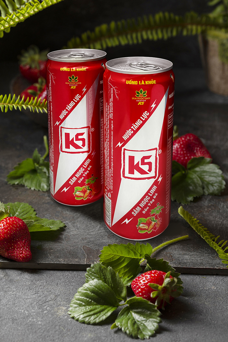 ✨Nước Tăng Lực K5 Sâm Ngọc Linh Thùng 24 Lon Vị Dâu Tây Đỏ (320ml/Lon)