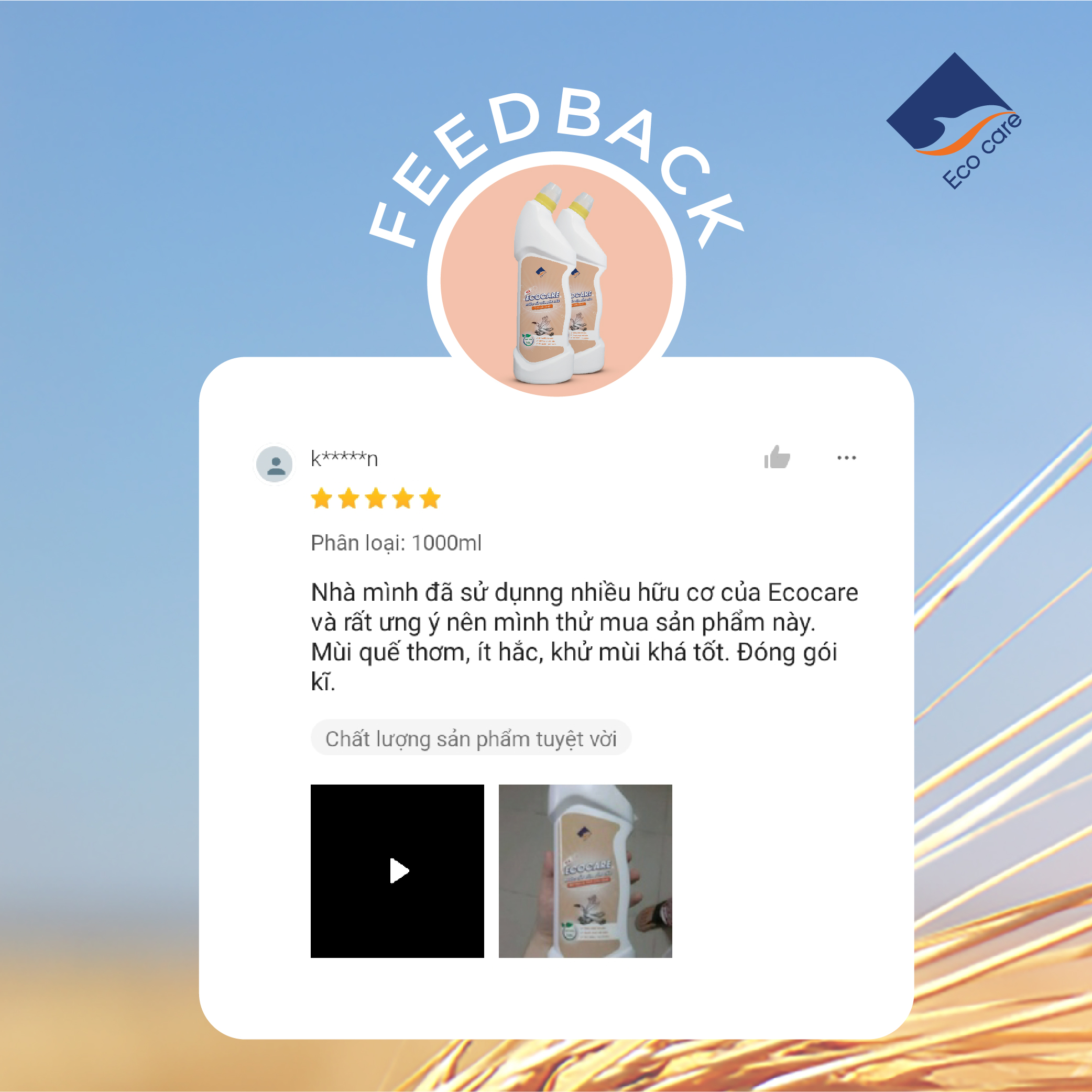 - Trước tiên, Ecocare xin cảm ơn Quý Khách hàng đã tin tưởng lựa chọn sản phẩm Nước tẩy rửa bồn cầu Hữu cơ Ecocare 1L