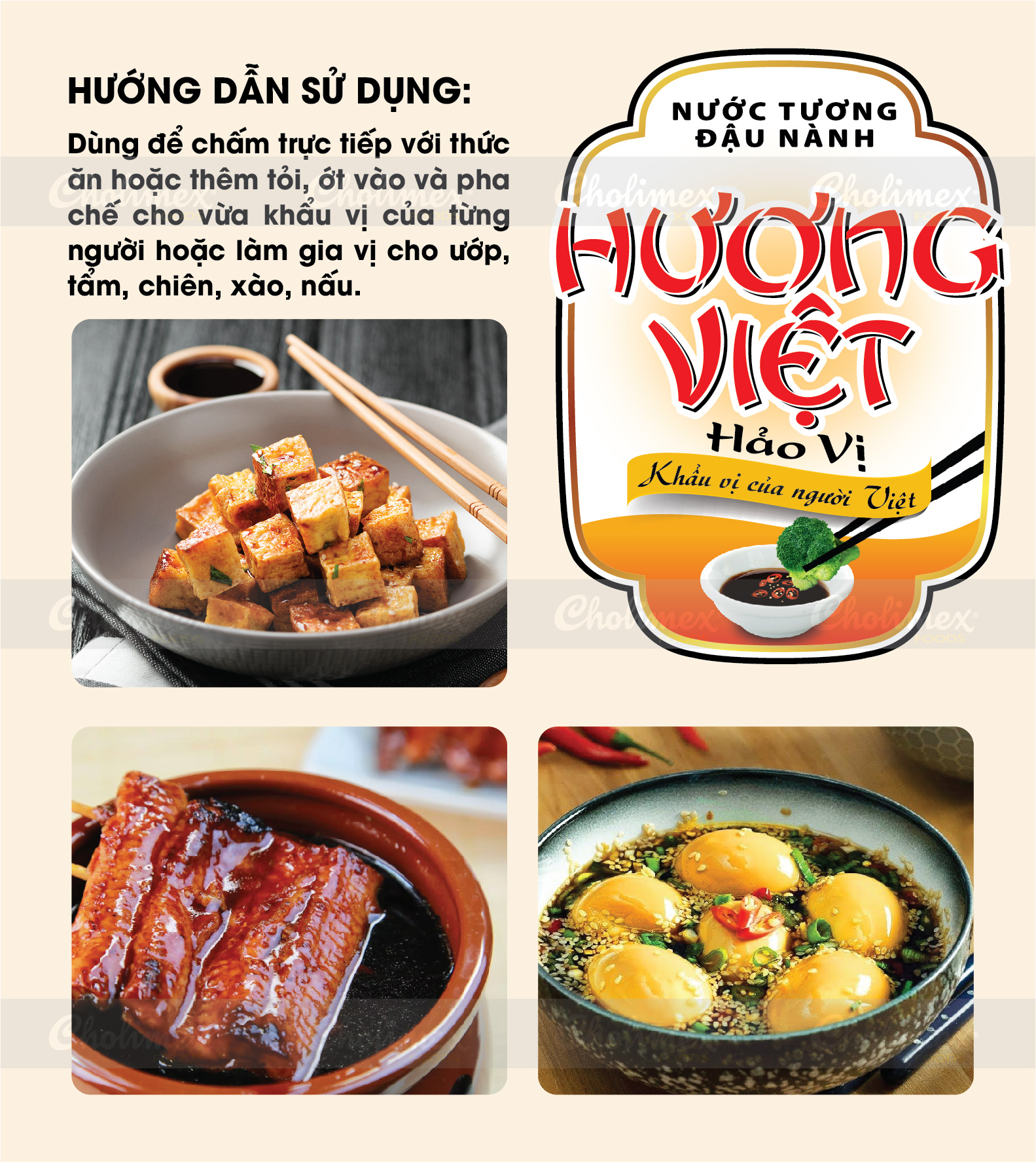 Nước tương Hương Việt Hảo Vị mới với công thức cải tiến, tăng cường độ đạm, cho hậu vị đậm đà hơn, kích thích vị giác, cho món ăn thêm thơm ngon hơn.