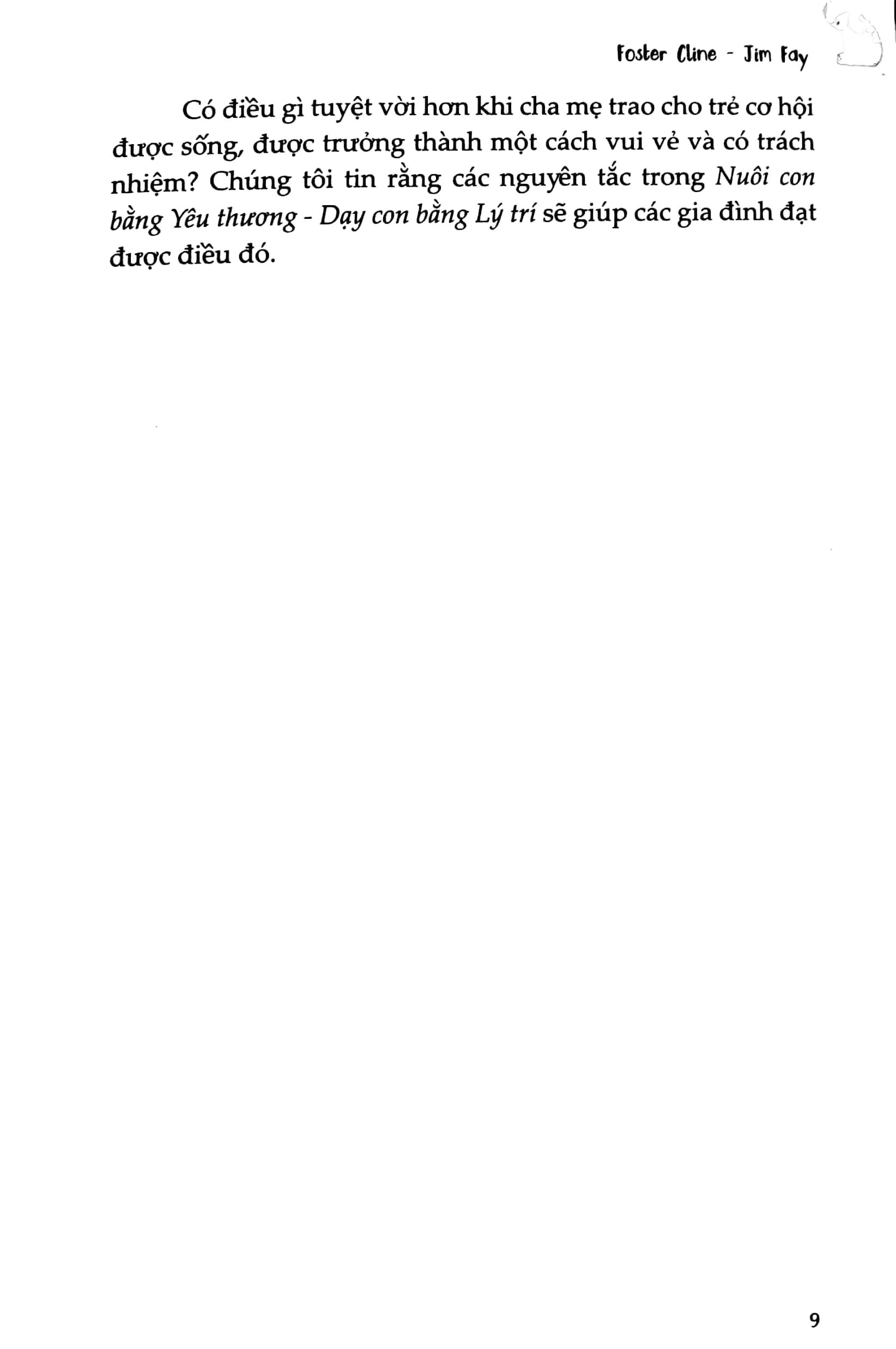 Nuôi con bằng yêu thương - Dạy con bằng lý trí (tựa sách gốc: Parenting with love and logic) đã được dịch ra rất nhiều ngôn ngữ trên thế giới. Và tại Việt Nam, rất nhiều cha mẹ đã nhiệt tình đón nhận ý tưởng nuôi dạy con bằng phương phát Yêu thương và Lý trí này. Đó là lý do, cuốn sách được tái bản lần thứ 2 với phần bổ sung các ví dụ thực tế để cha mẹ có thể tương tác cùng con cái, cùng nuôi dạy một em bé tự lập, biết đưa ra quyết định cho bản thân, giàu tình yêu thương, và có thái độ tích cực với cuộc sống.